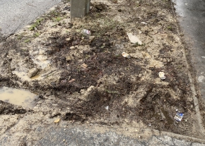 A Hűvösvölgyi út mentén a parkolóhelyek állapota hosszabb ideje rendezetlen, a terület takarítása nem megfelelően történik.