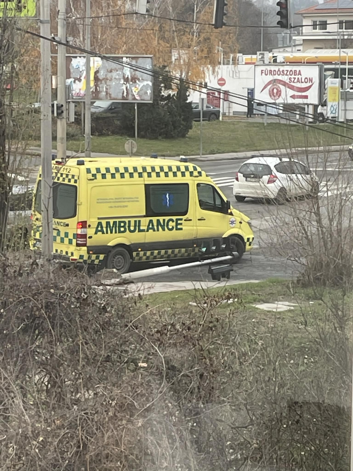 1037 Budapest, Bécsi út - Bojtár u. sarkán lévő jelzőlámpa kidőlt
