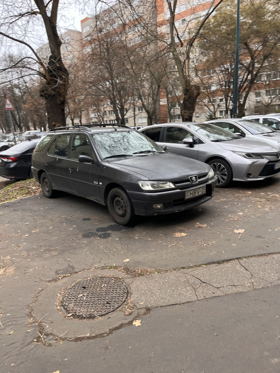 A képen látható forgalomból kivont, műszaki nélküli, HBV-05X frsz. Peugeot folyamatos parkoló foglalása nem oldódott meg, most átparkoltak vele az Ormánság utca 17. elé...
