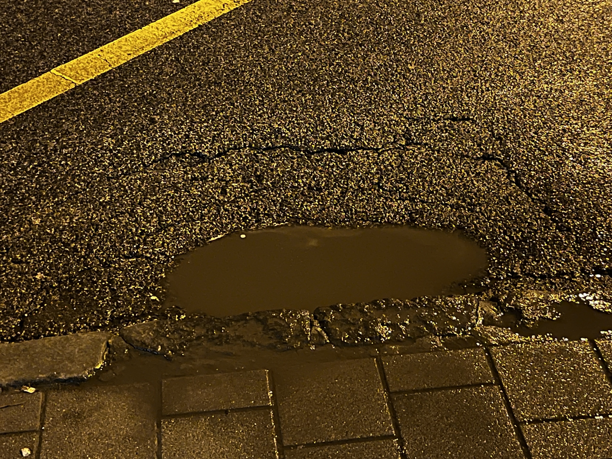 Kátyú a Kassák Lajos utca troli megállóban.