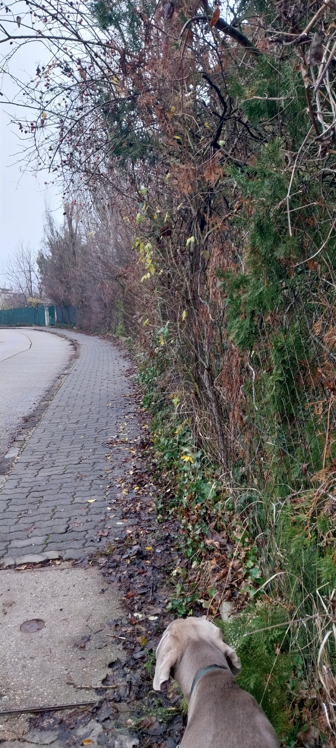 A jarda faleveles, kutyapiszkos, elhanyagolt.