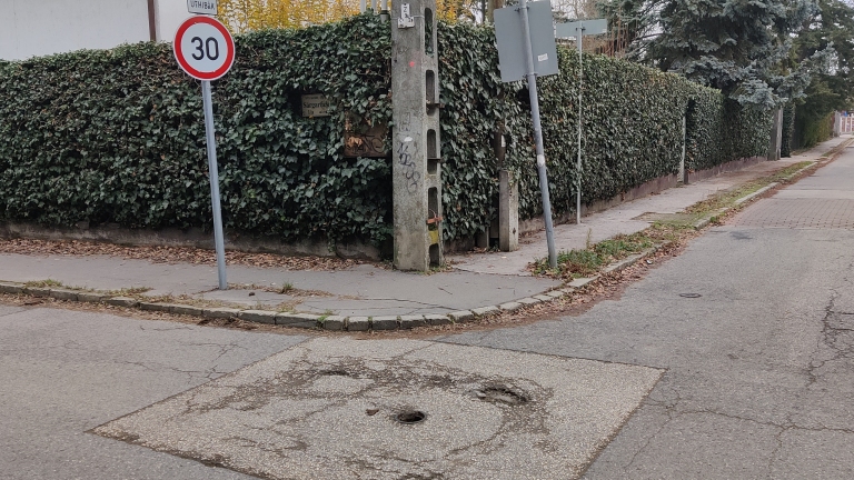 16. ker Sárgarózsa utca és Aldebrő utca sarkán egy közmű elzáró fedele hiányzik és törött is.