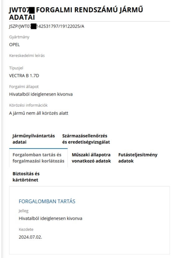 Hivatalból ideiglenesen kivonva - Kezdete 2024.07.02.