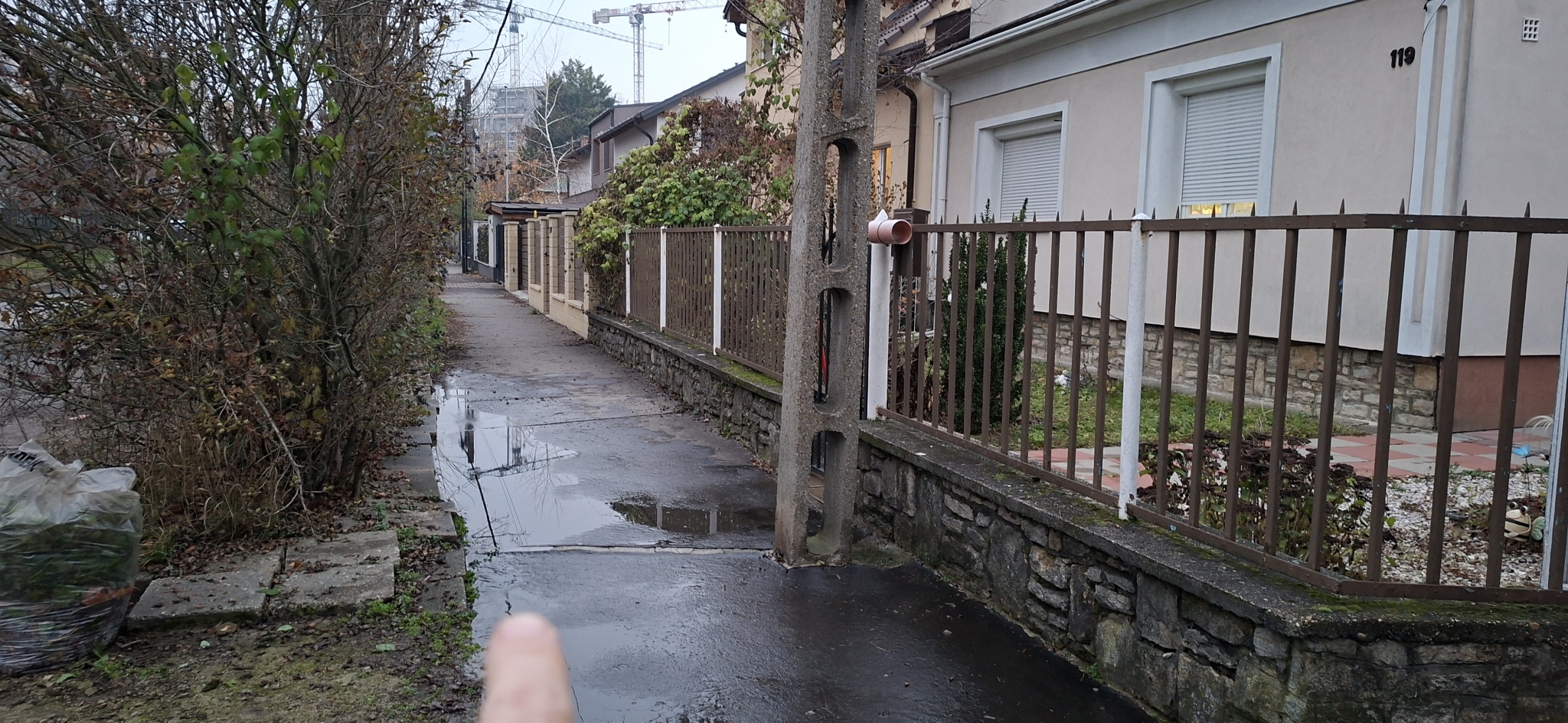 1039. Árpád út 119 előtt a jarda alatt csőtöres van. Jön fel a víz!