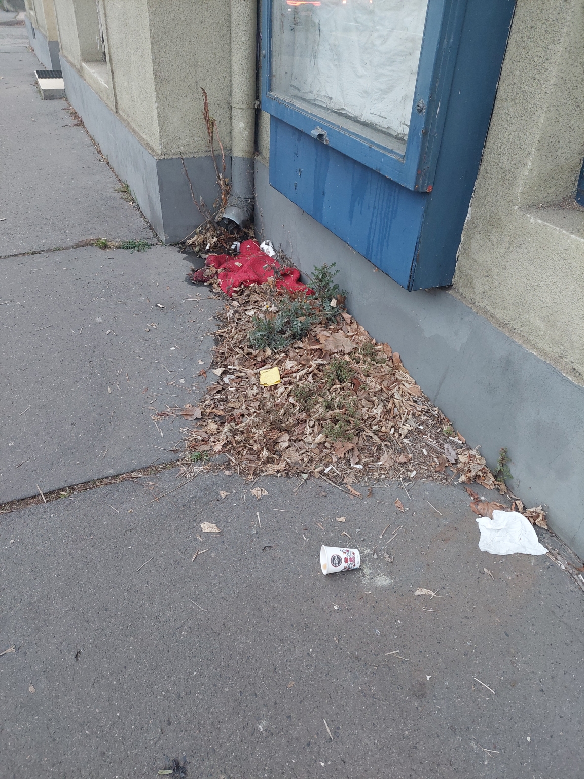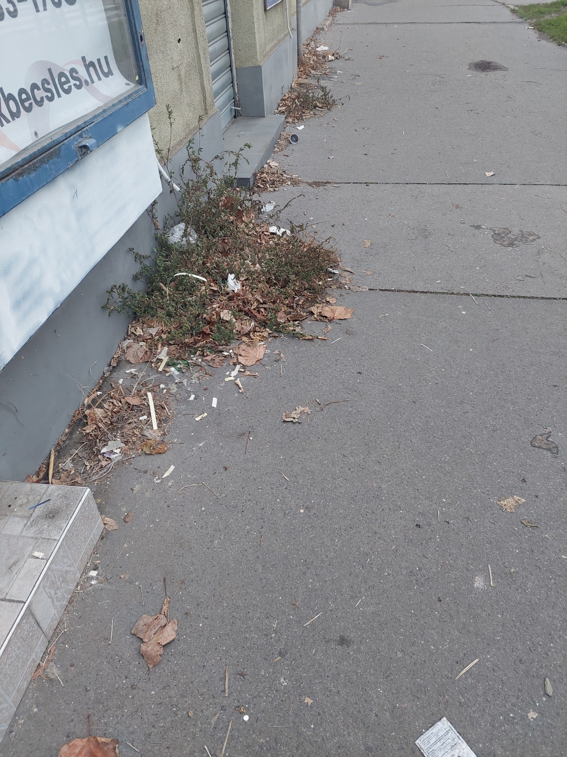 Szemetesek, elhanyagoltak a járdaszakaszok, X. kerület, Üllői út 120-122. épületek előtt. Takarításuk szükséges.