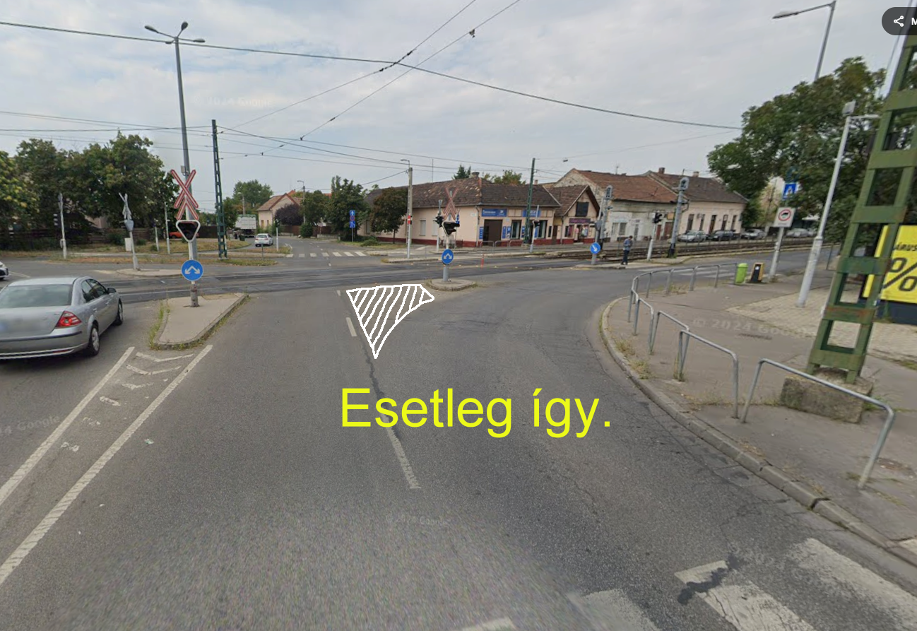 Az aktuális kereszteződésben egyre többször előfordul, hogy a KRESZ szabályokat nem ismerők indokolatlanul, akár percekig is blokkolják a kanyarodó sávot vasúti piros esetén. Bár tábla, és útburkolati jel is mutatja hogy ebből a sávból csak jobbra lehet kanyarodni, ennek ellenére úgy gondolják a sáv egyenes vonalvezetése miatt hogy abból ők egyenesen is tovább haladhatnak. Ezzel a helytelen gyakorlattal sokszor a menetrendszerinti autóbuszokat is indokolatlanul percekig feltarják. Kérjük a Budapest Közút-at, hogy a sáv egyenesen haladó részére fessen fel "forgalom elöl elzárt terület" útburkolati jelet, mely talán segít a közlekedőknek észre venni, hogy ez csak jobbra kanyarodó sáv. (utolsó kép)