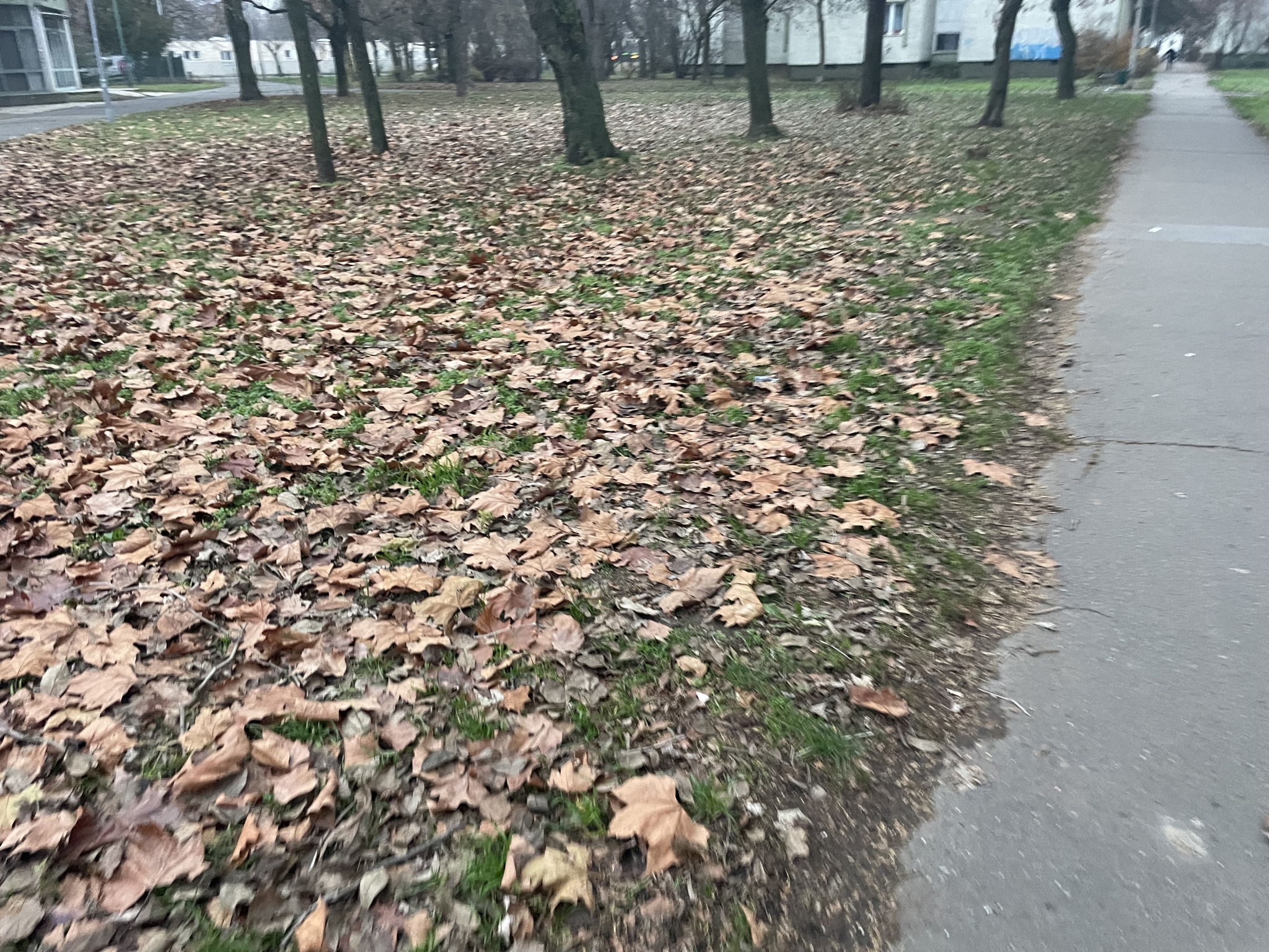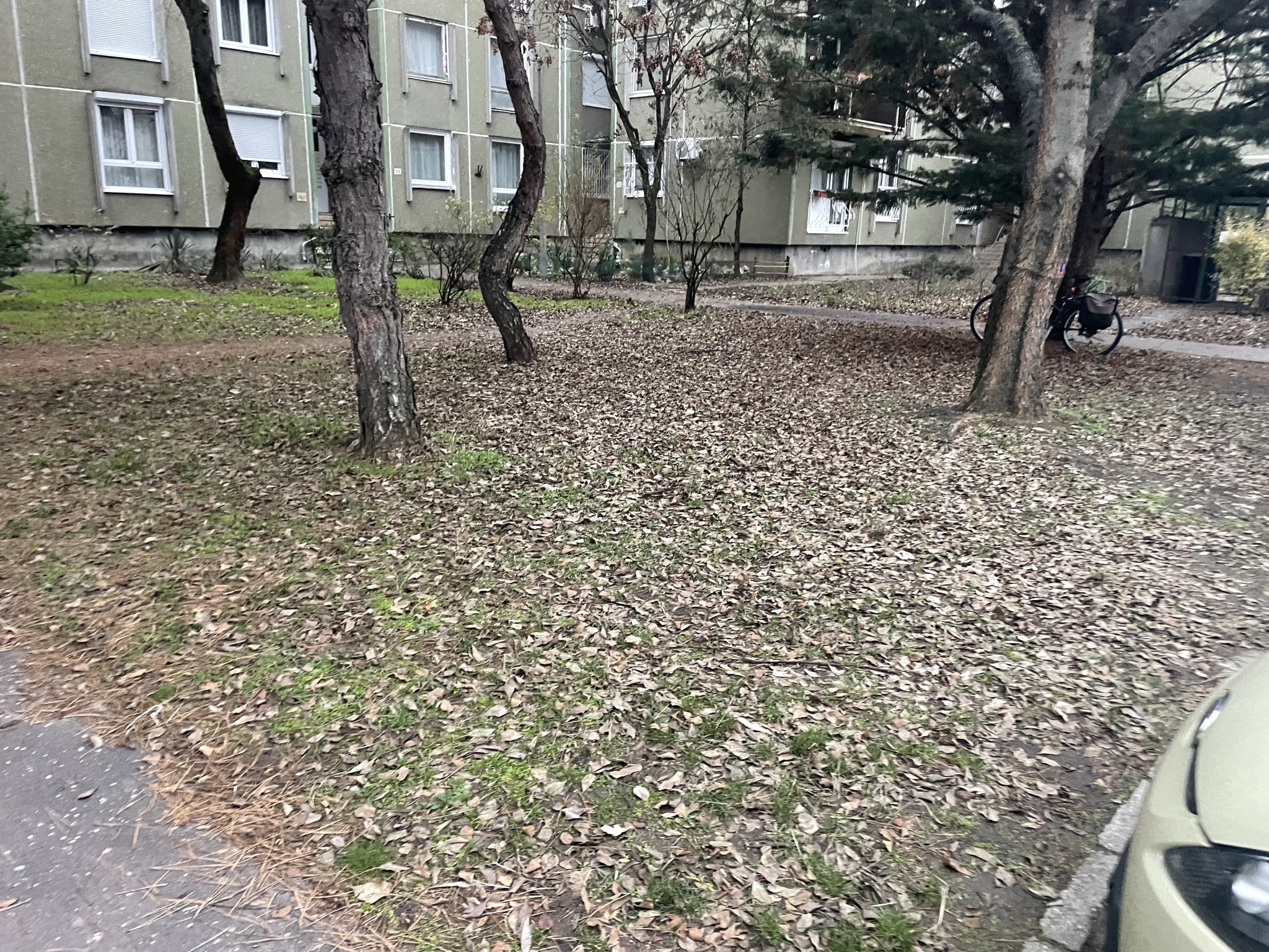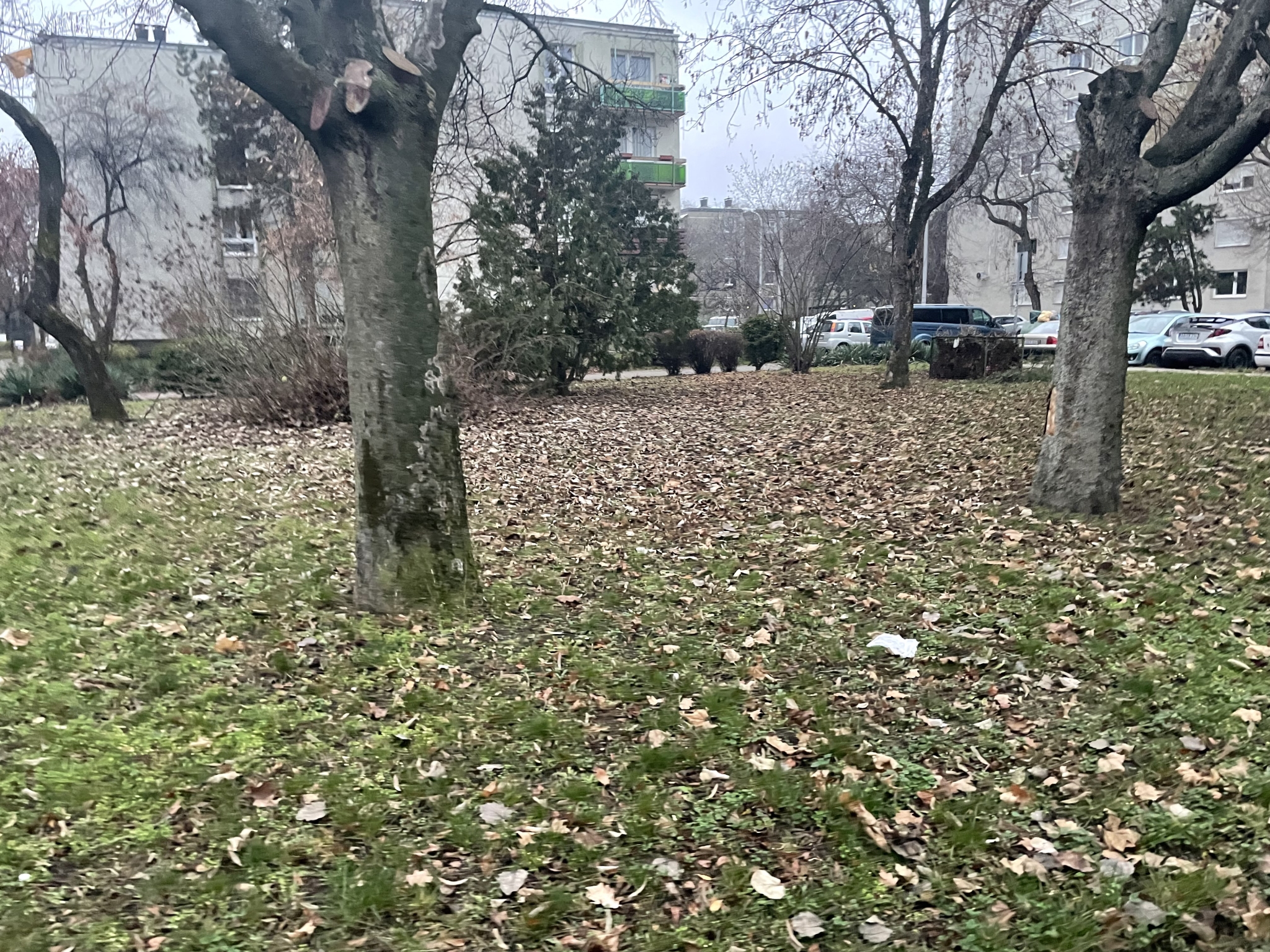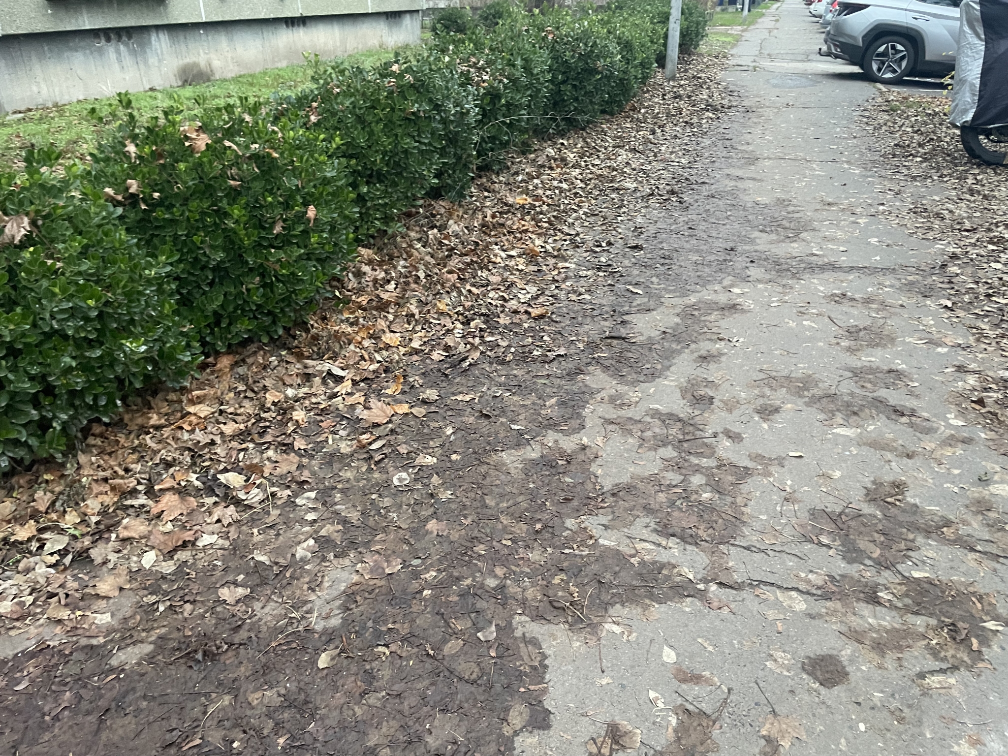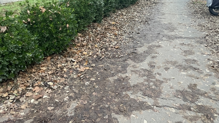 Nádastó parkban nem kerültek összeszedésre a levelek, ezeket a járókelék és az autók letaposták. Büdös, rohad, csúszik balesetveszélyes.