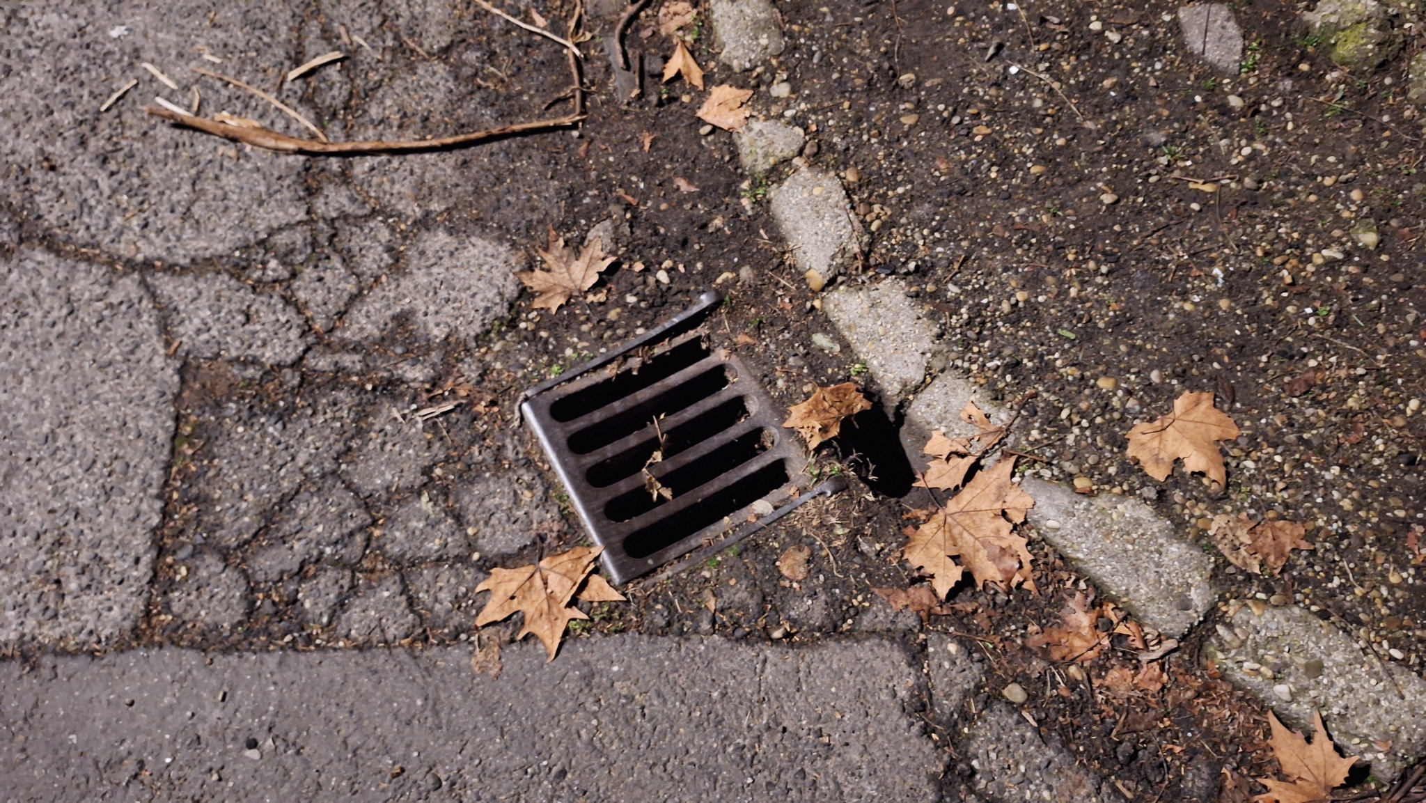 A Vécsey és Akácfa utca sarkánál lévő csatornarács és a járdaszegély között van egy lyuk.