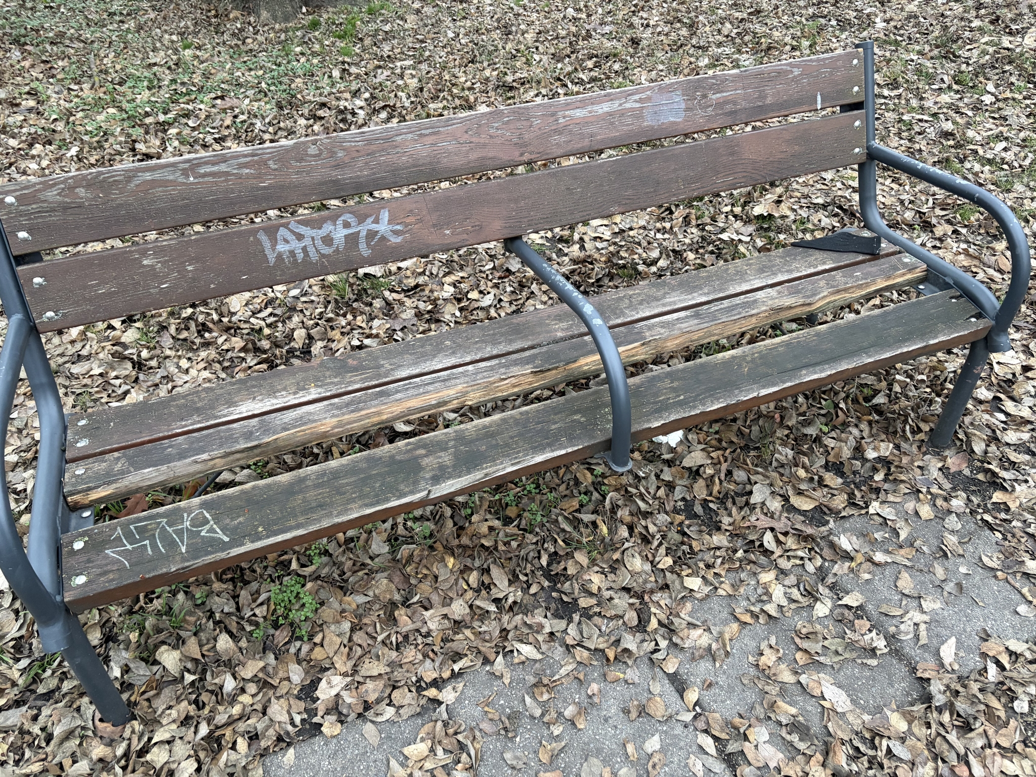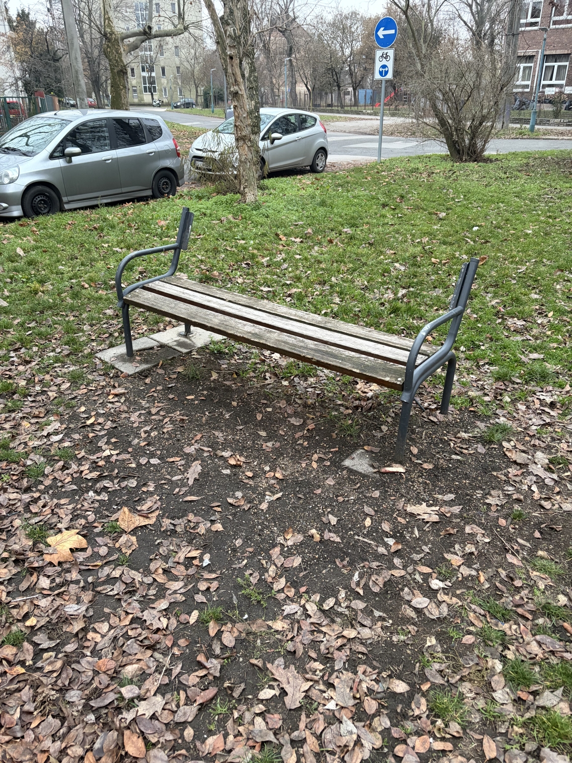 A zuglói Újvidék tér iskola felőli sarkán lévő padok nagyon rossz állapotban vannak. Az egyiknek a teljes háttámlája hiányzik, a másiknak az ülőfelülete korhadt el teljesen.