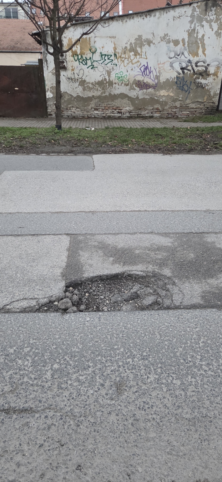 Újabb kátyú a Tatai u. 54. szám előtt.