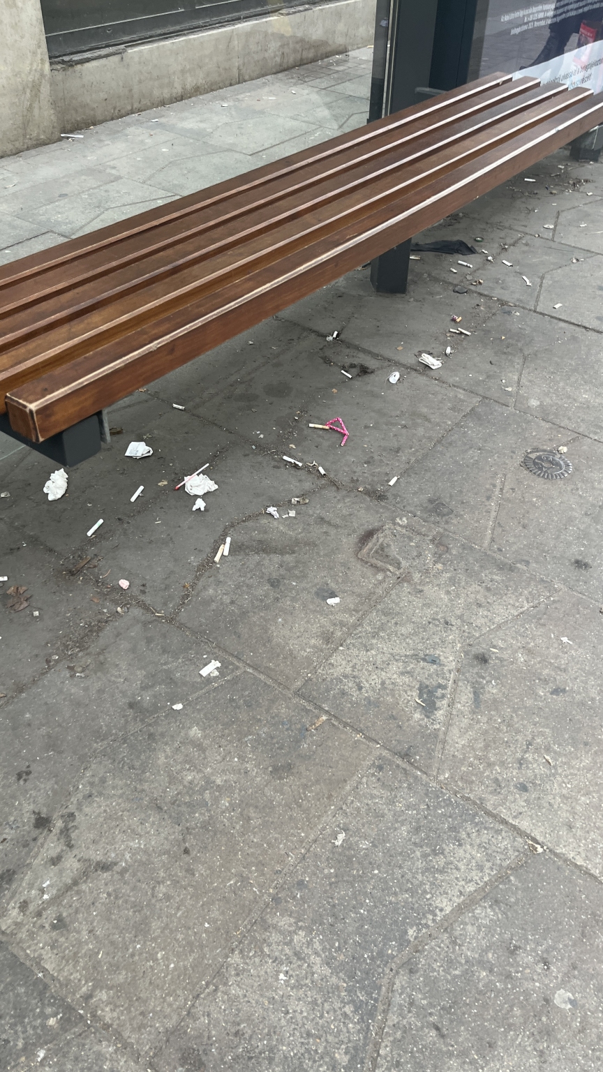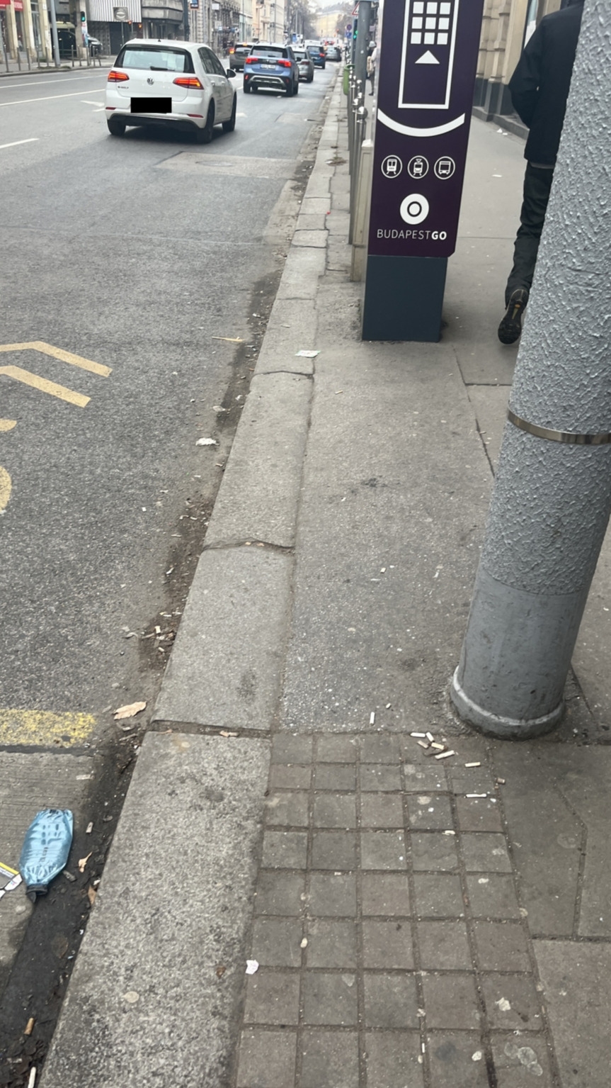 A Kálvin téri 100E buszmegállóban állandó a szemét, hétvégén egyáltalán nincs takarítás. Sokszor több napos hányásokat, csikkeket, szemetet kell kerülgetni. Kérném az ismételt takarítást, valamint kísérleti jelleggel a buszmegálló előtt egy dohányzásra kijelölt hely kialakítását külön kukával, mint az az illusztráción látható.