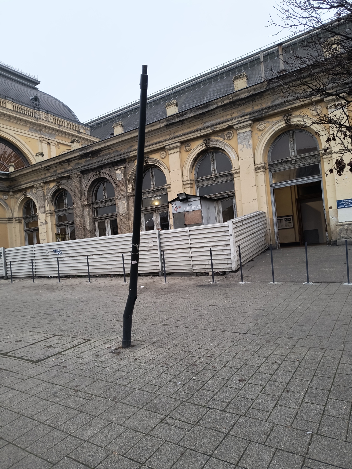 Félig kidöntött lámpaoszlop a Keleti pályaudvarnál