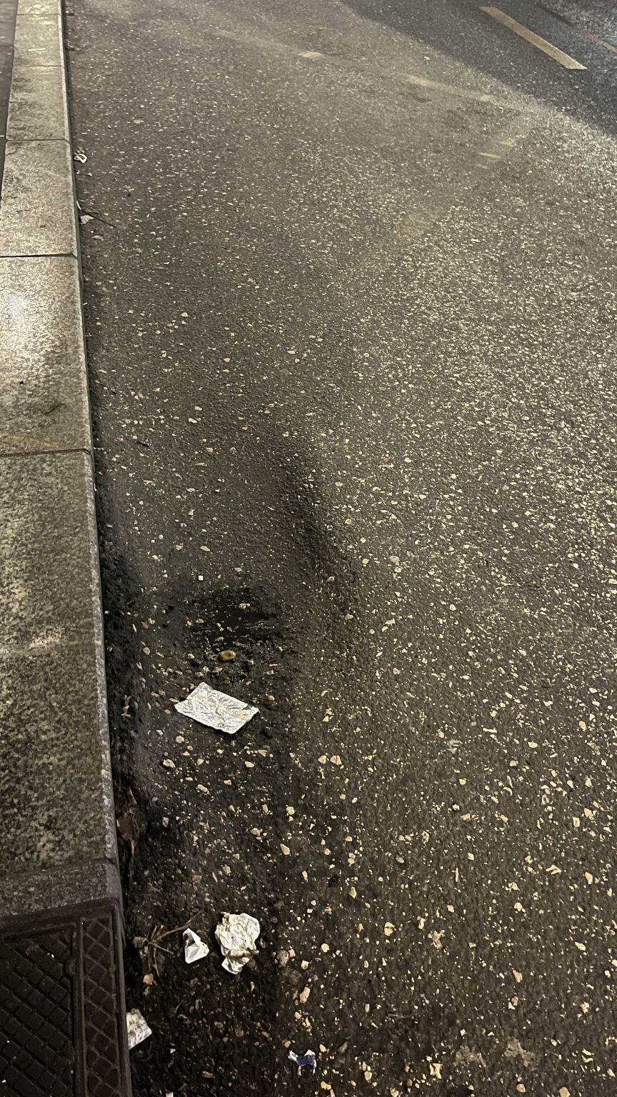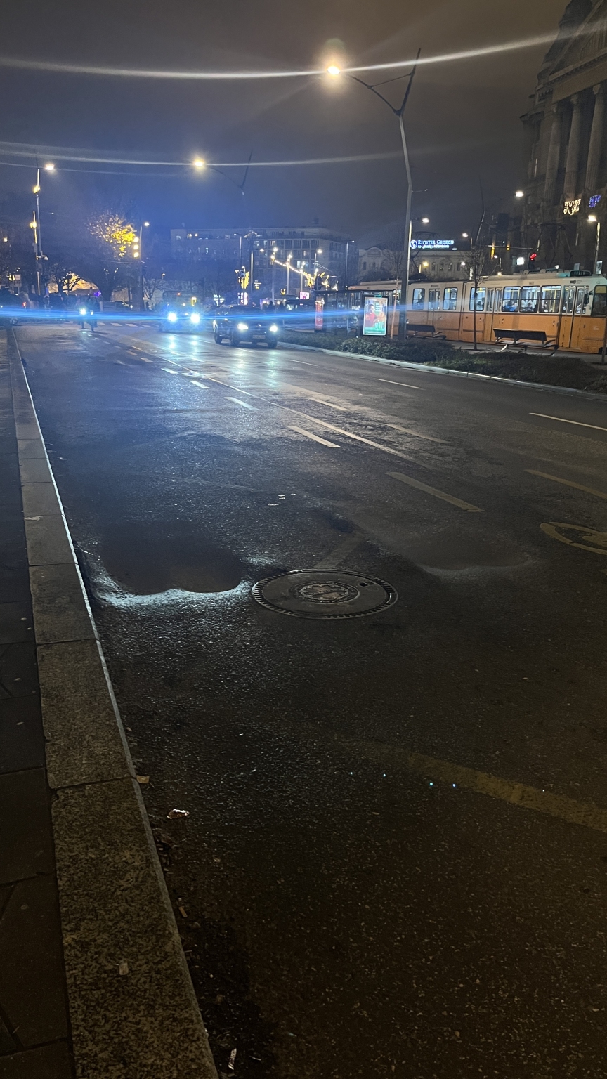 A Deák téren a térképen jelölt buszöbölben hatalmas kátyúk vannak.