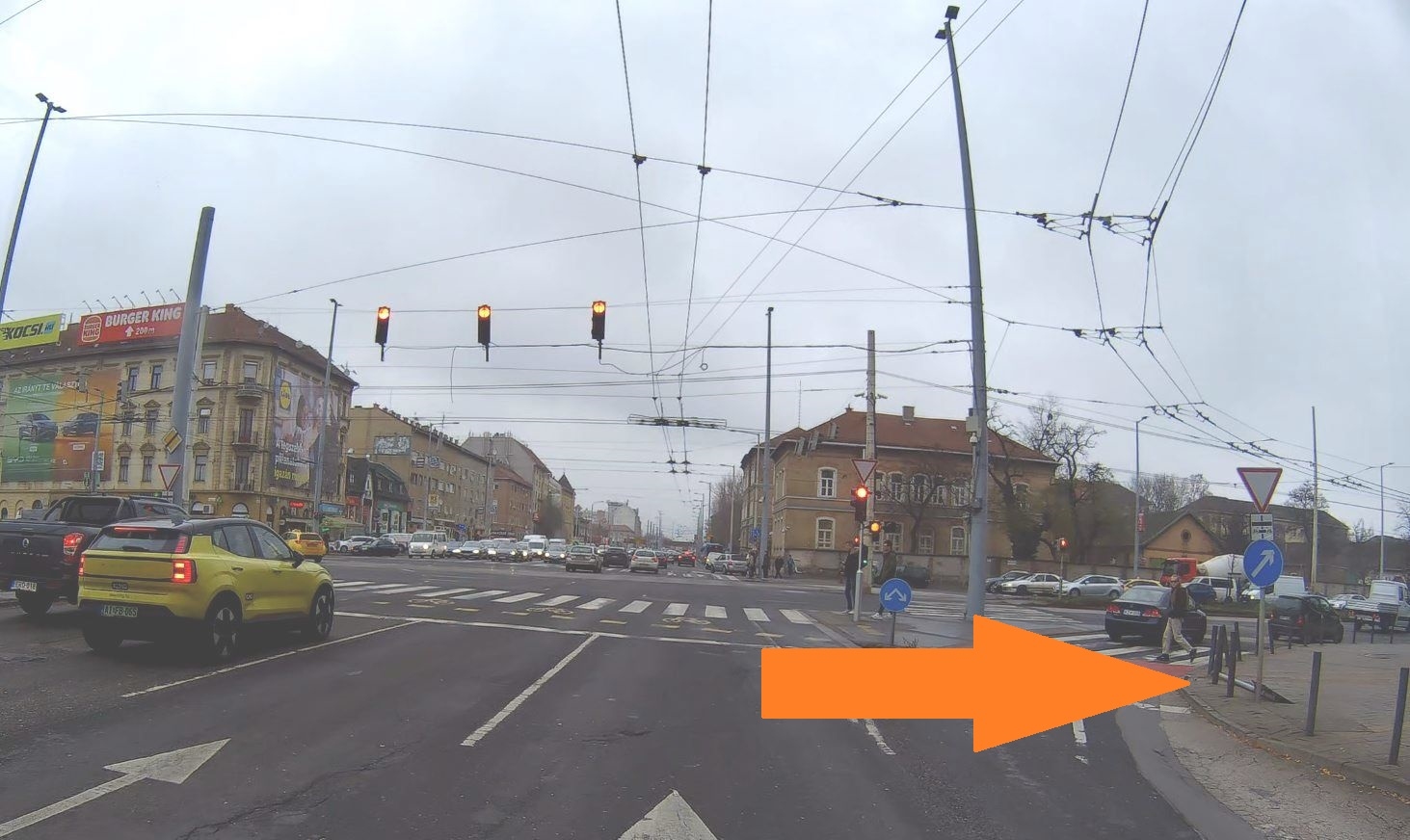 Kidőlt gyalogos-átkelő tábla Kerepesi-Hungária kereszteződés