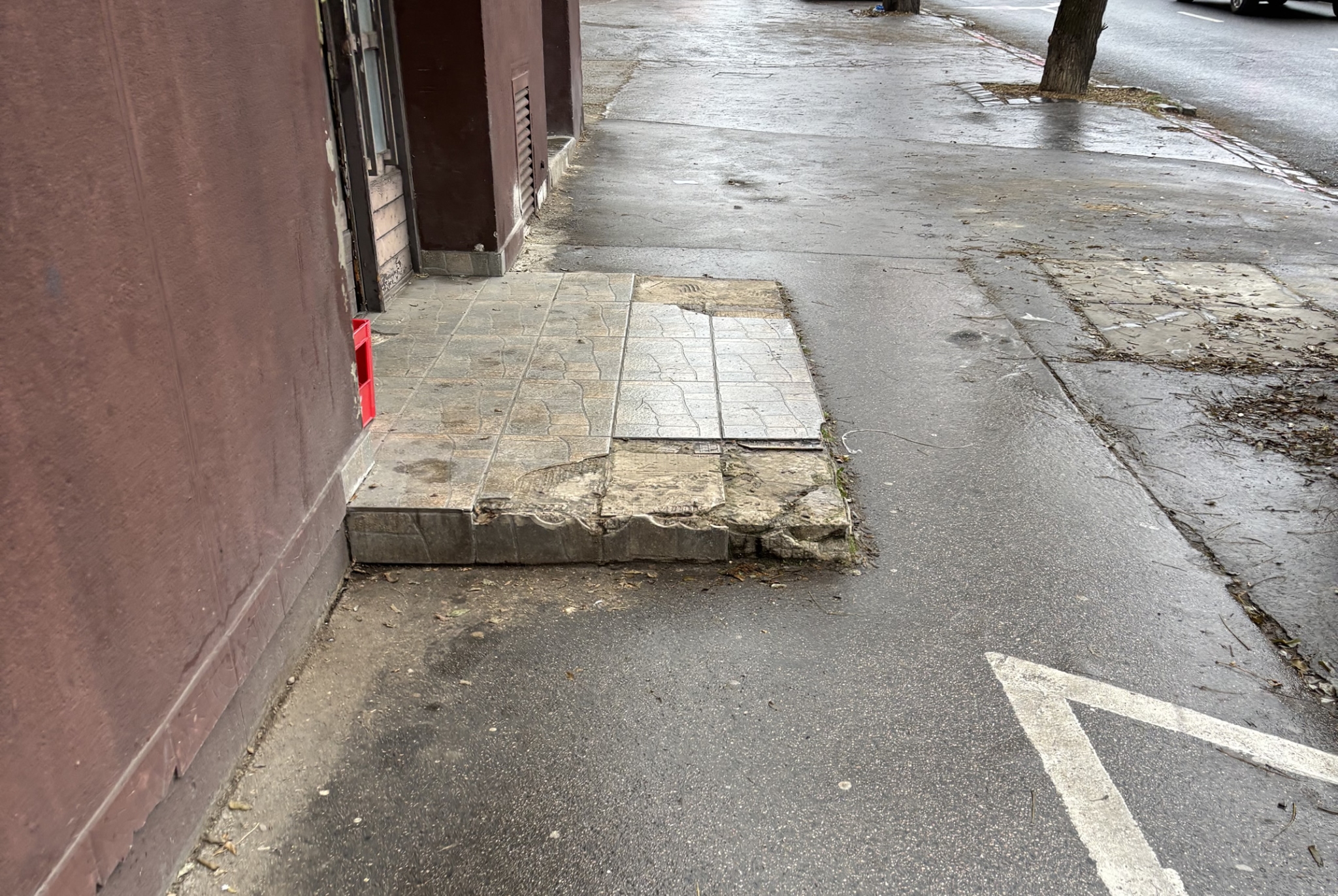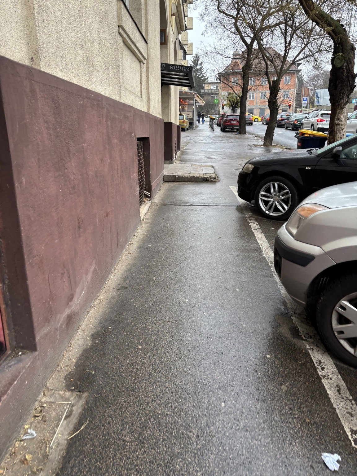 A Mészáros utca 64. előtt van egy lépcső, amely gyakorlatilag teljesen elfoglalja a járdát, és szerintem elég balesetveszélyes is, mert a Déli pályaudvar irányába haladva viszonylag belesimul a járdába, de a másik oldala jóval magasabb. Ha az autók közelebb parkolnak hozzá, akkor kikerülni is nehézkesebb.