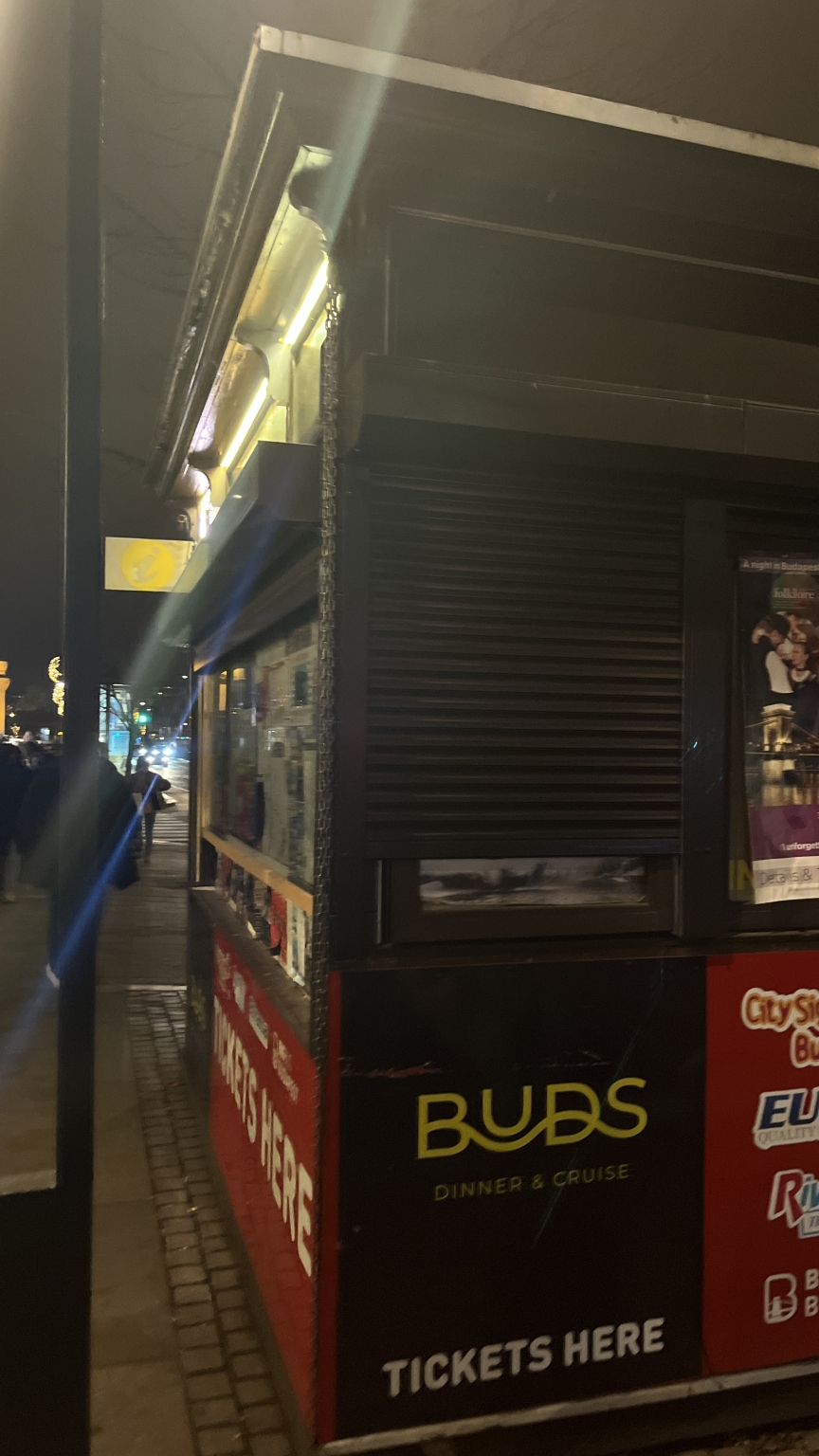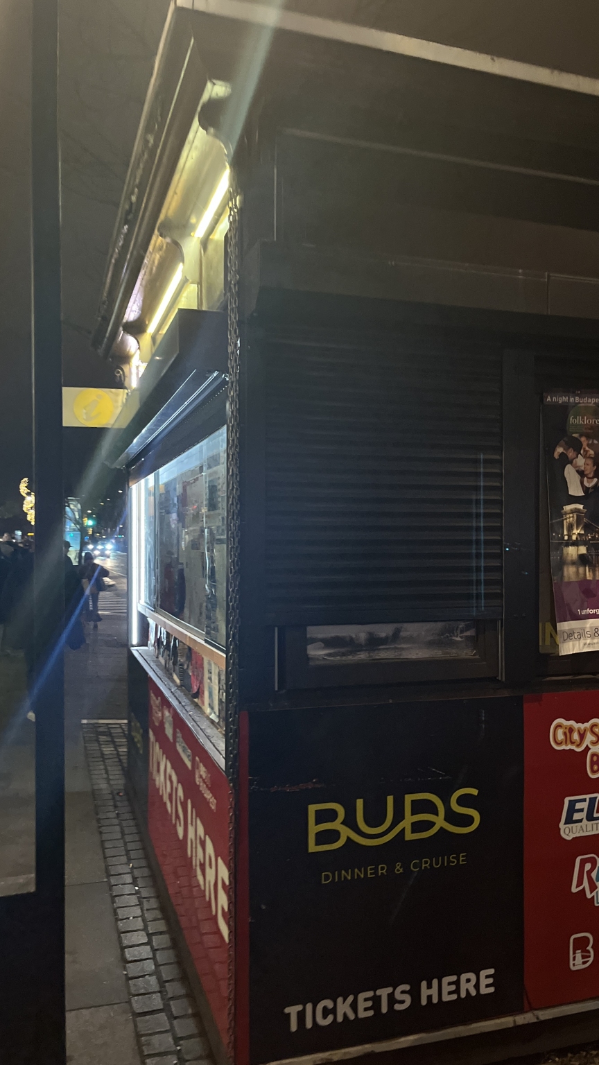 A Károly körúton lévő Budapest Info bódé világítása rendellenesen villog.