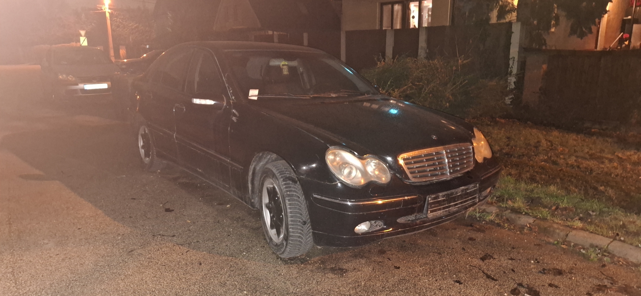 Útban lévő elhagyott autó