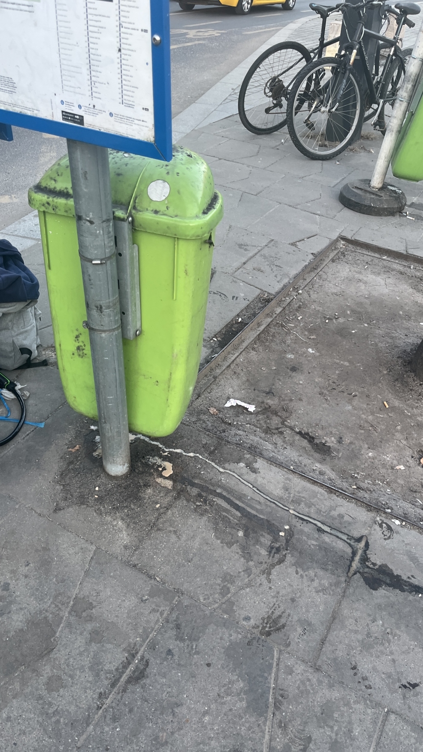Kérem, hogy ezt a kukát lehetőleg cseréljék egy, az alján zárt új típusú kukára, vagy helyezzenek el mellé egy gyűjtőedényt, akár a csatornába vezetve, csak erre a célra. Köszönöm segítő együttműködésüket! Elhelyezhetnének egy talpas kukát a megálló hátsó részében is, az utasvárónál.