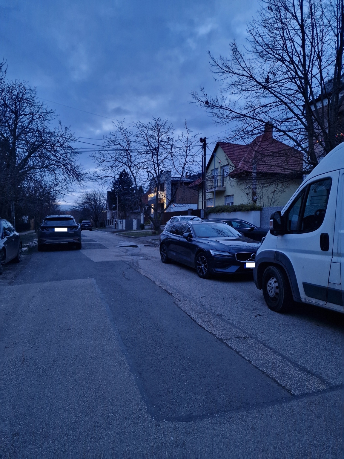 A Sümegvár utca 7. környékén az úttest mindkét oldalán parkolnak az autók és van, hogy szinte összeér a két oldalon parkoló kocsisor vége. Kíváncsi vagyok, hogy egy tűzoltóautó, vagy kukásautó elférne-e itt. Az utca nem egyirányú, így az indokolatlanul beszűkített utca viszont nem alkalmas a kétirányú forgalomra. A képeken nem lehet elég jól szemléltetni, de ennél súlyosabb helyzet is szokott lenni.