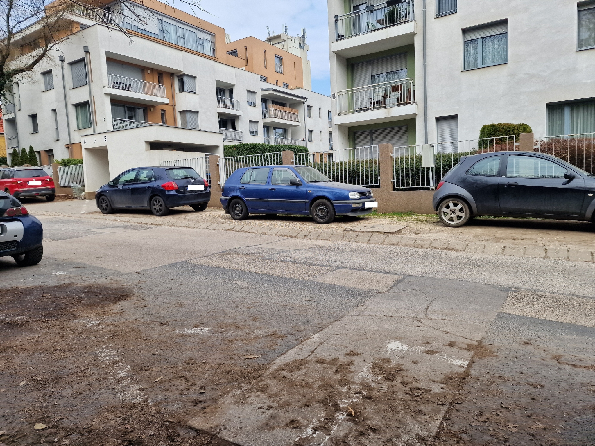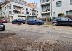 1997-es kék Volkswagen GOLF 1.4 várakozik a Rahó utca 3-5. előtt, 2025.10.06-ig volt érvényes a műszakija.