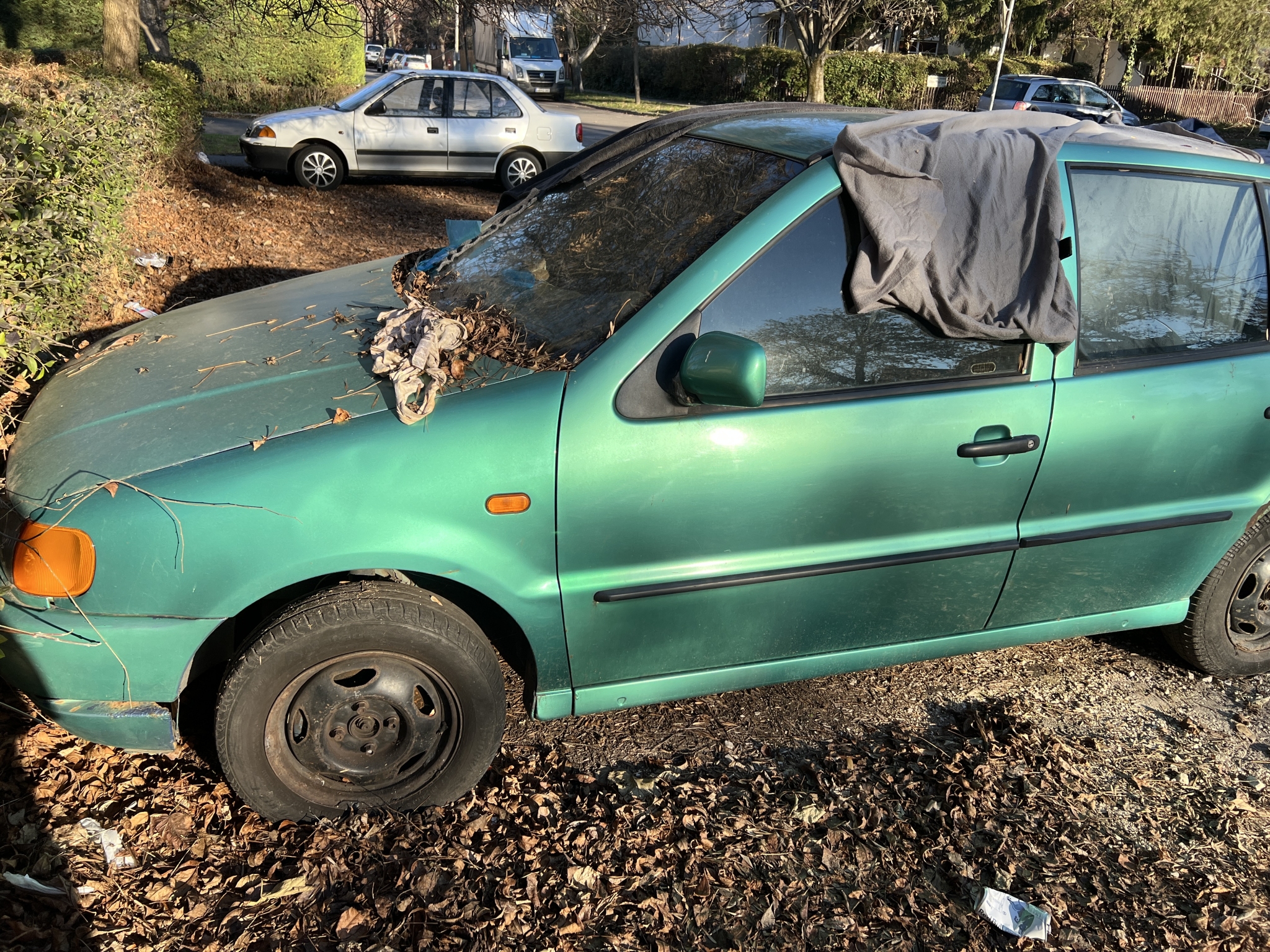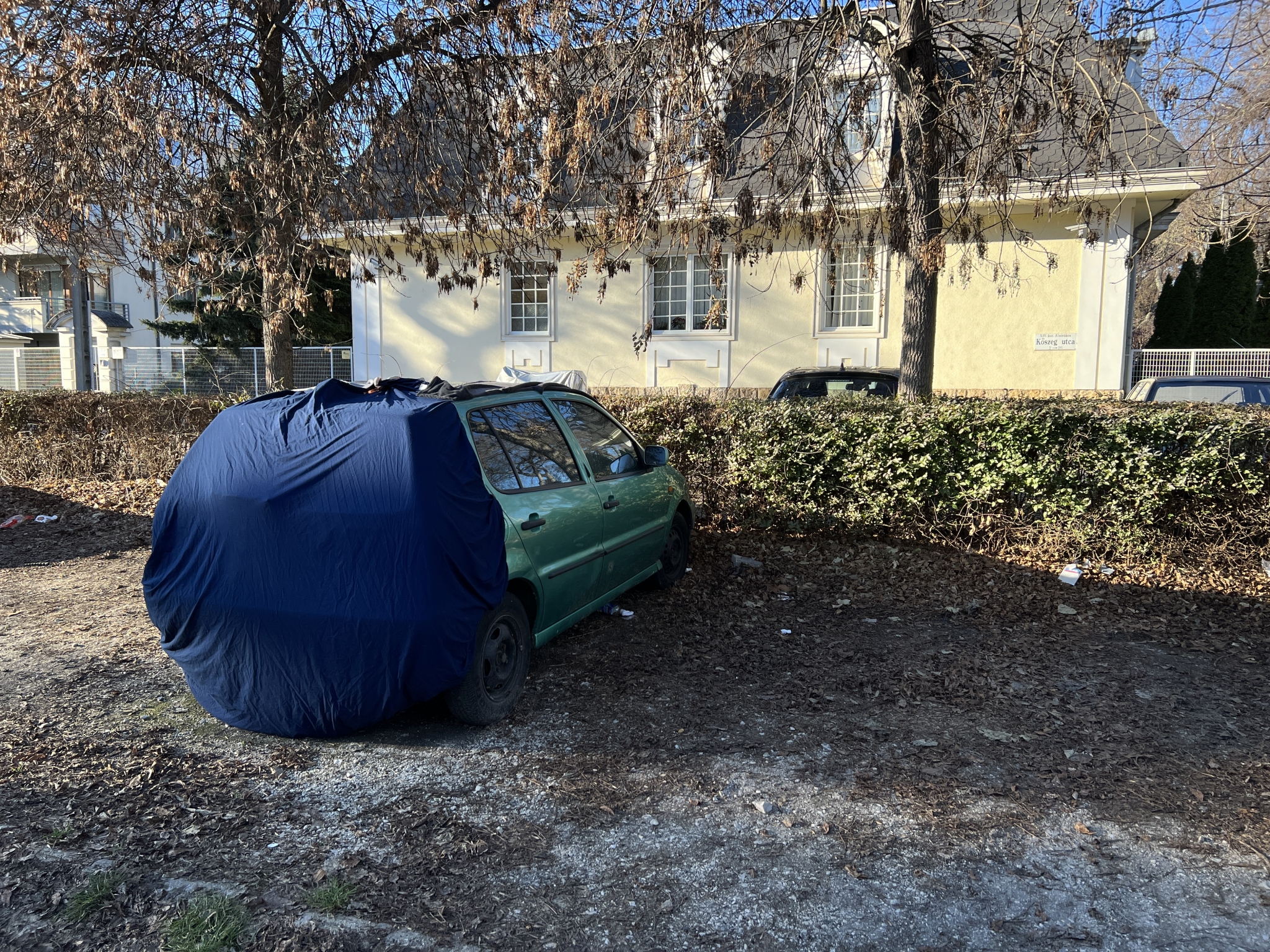 A Kőszeg utca 26 előtt hosszú ideje parkol egy elhagyatott, leromlott állapotú autó aminek a szélvédőjére már szerepel egy korábbi felszólítás is.