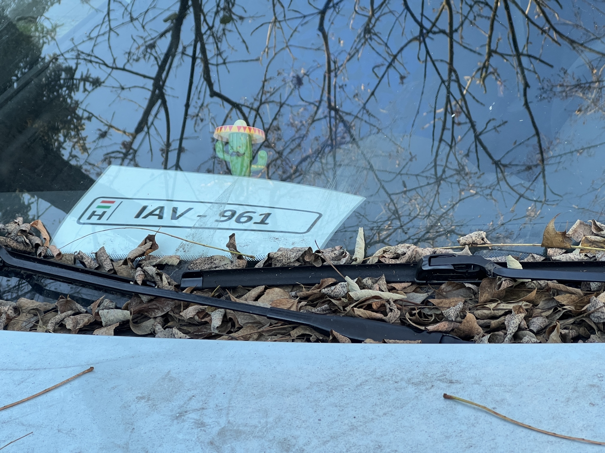 Balesetes, rendszám nélkül a közterületen parkolt autó