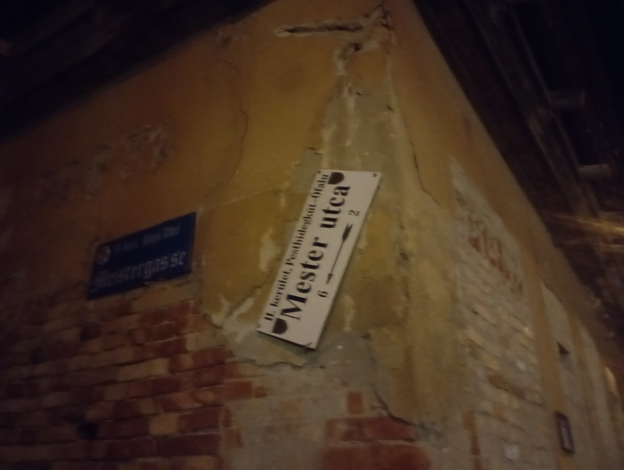 A Mester utca # Gazda utca sarkán, a posta-romházon lóg a tábla