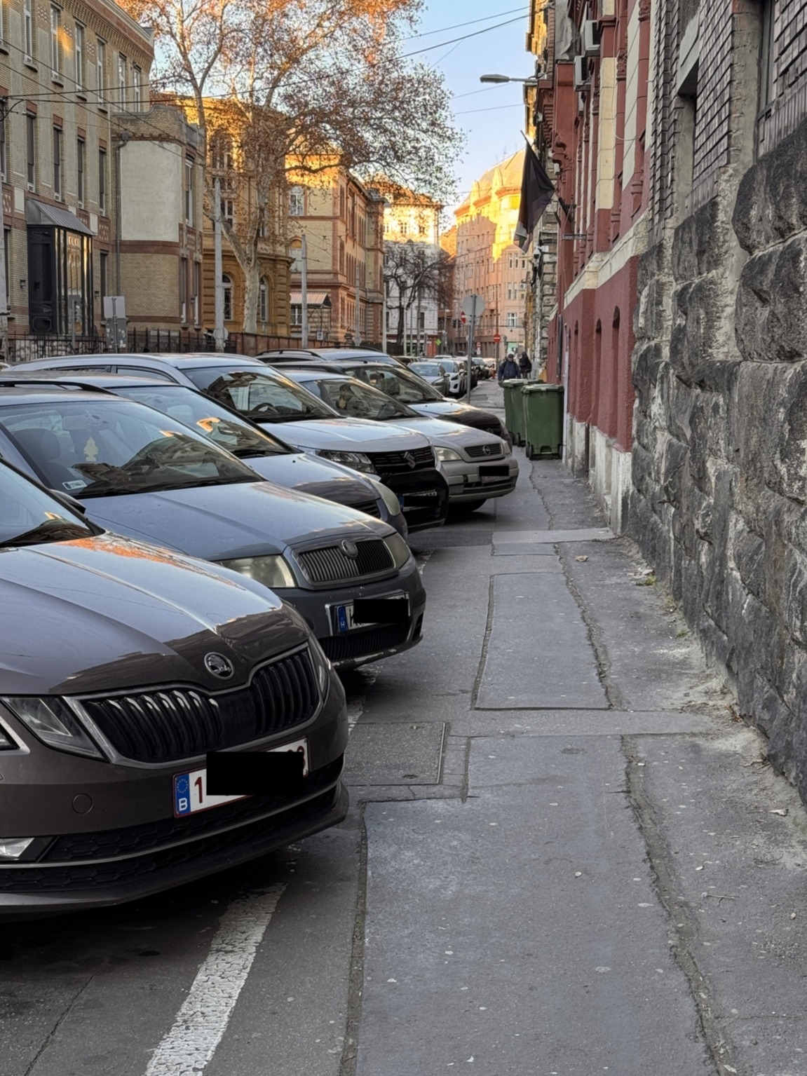 A parkoló autóka járdán elveszik a helyet. Érdemes lenne a parkoló helyek, más módón való elrendezése.