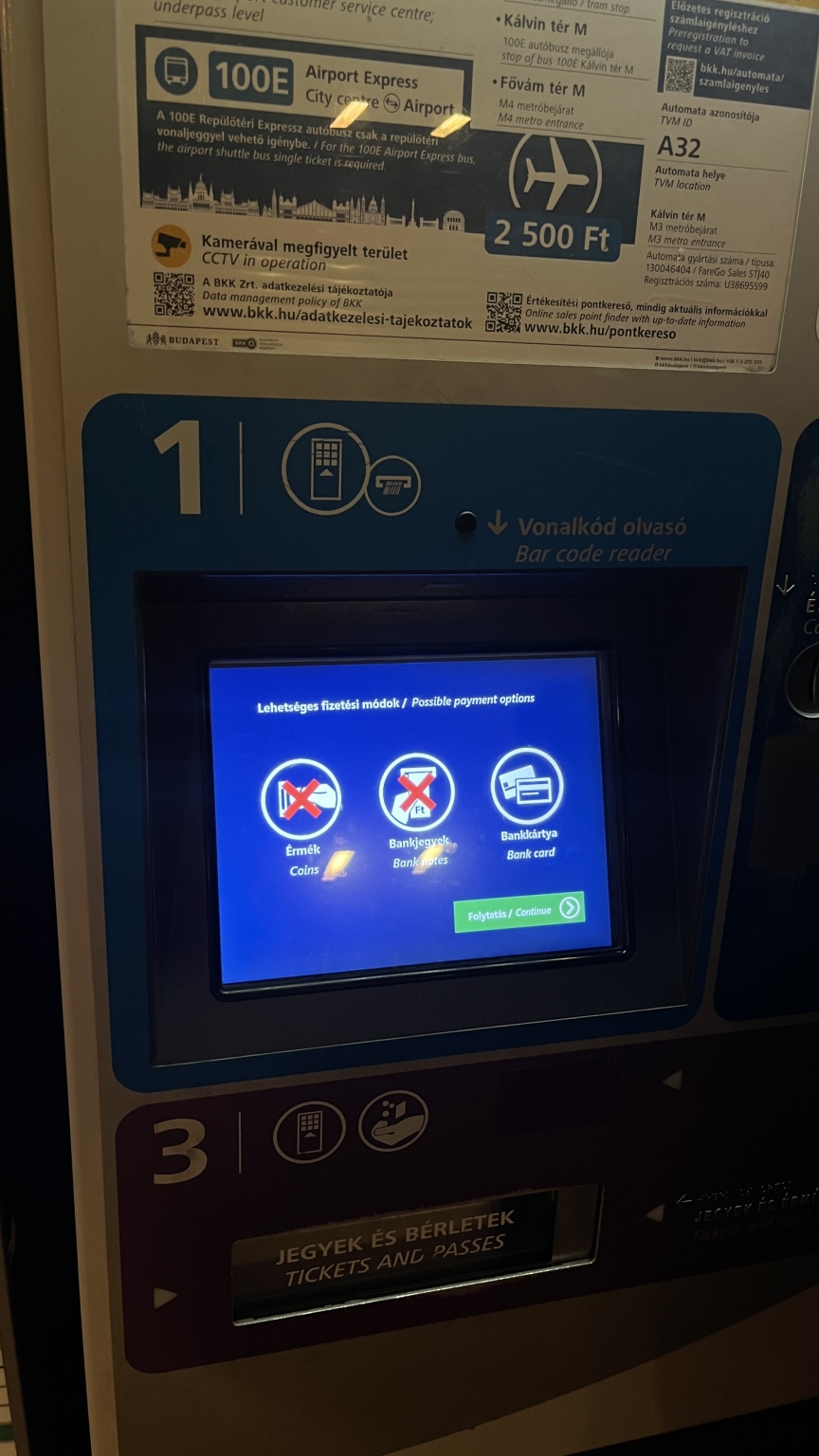 Lehetetlen készpénzes jegyvásárlás a Kálvin téren