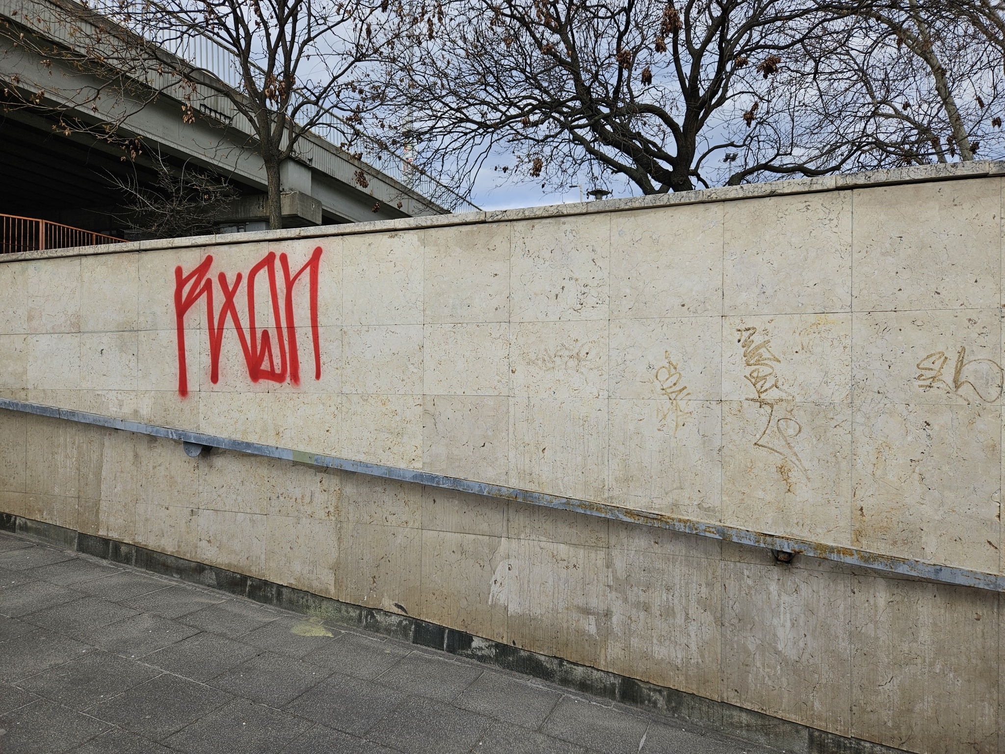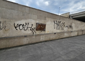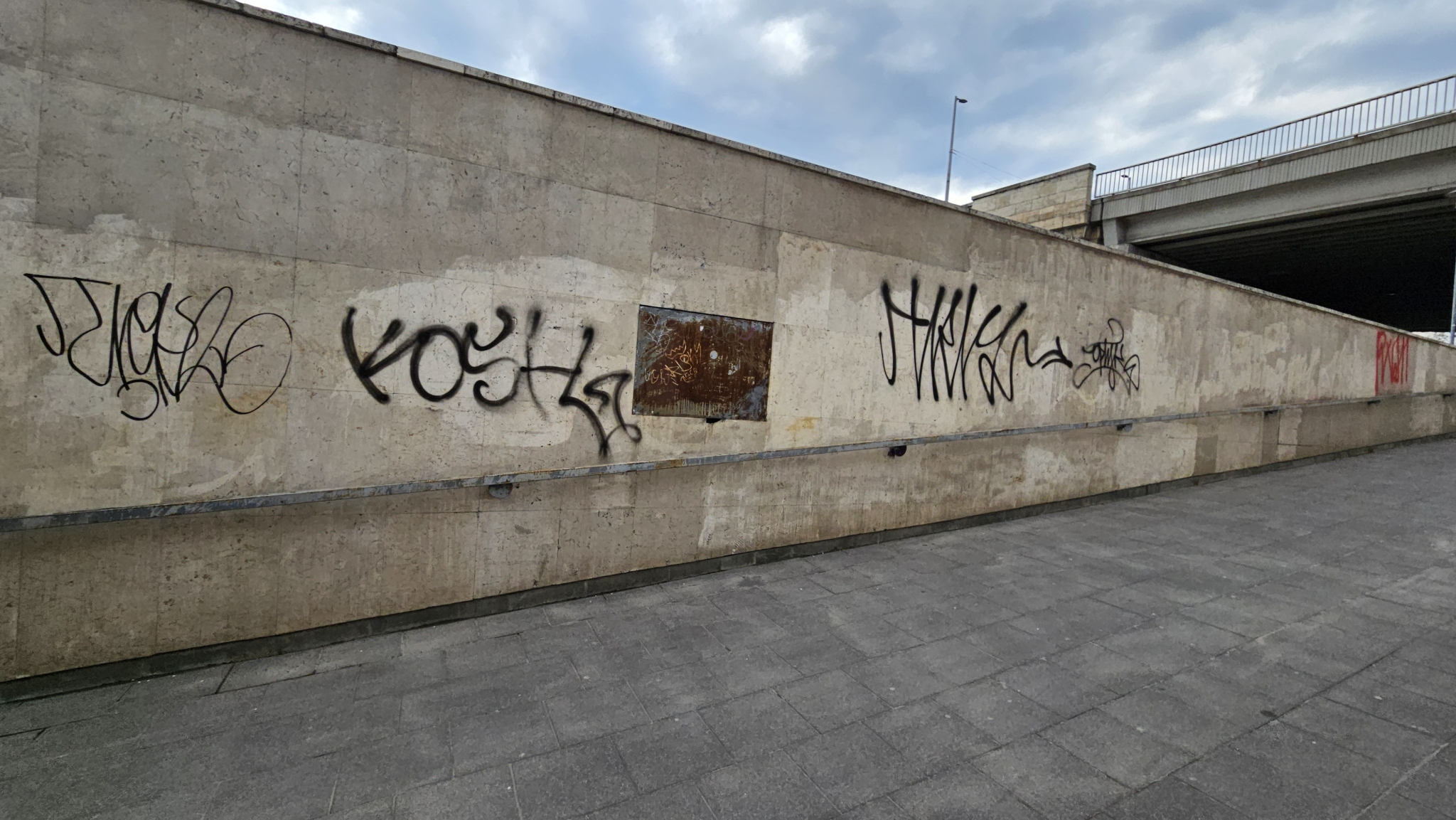 Graffitis a Boráros téri aluljáró J és K lépcsői.