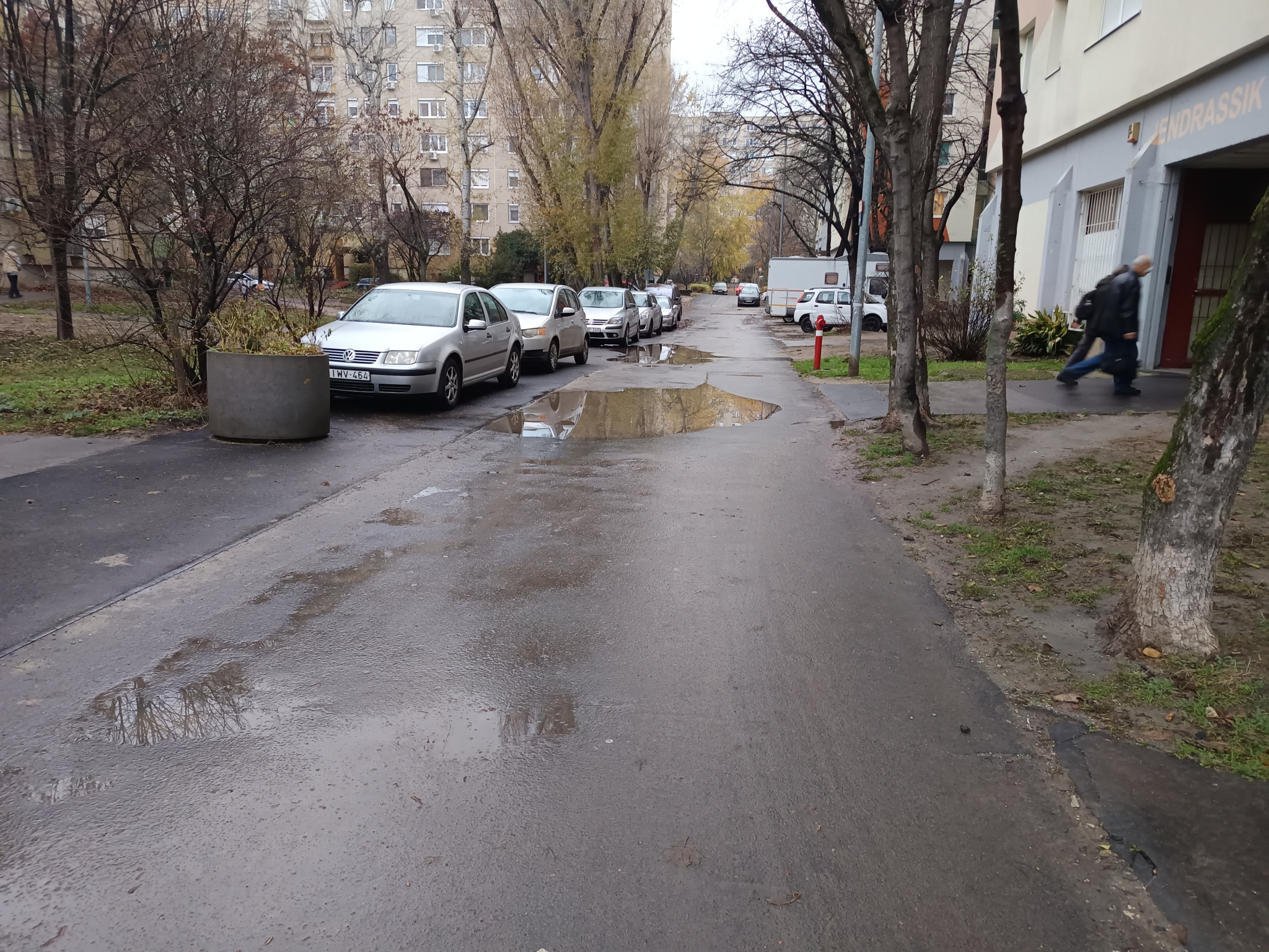 A békásmegyeri lakótelep hegy felőli oldalán az Őszike (Jendrassik Gy.) utcában van egy HATALMAS tócsa. Most, hogy befejezték a közműjavítást, de ezt a kátyút mégsem javították ki, legyenek szívesek március 15-én ezzel kezdeni.