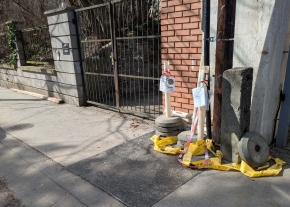 Kérem a járda burkolat javítását, és az otthagyott kellékek elszállítását.