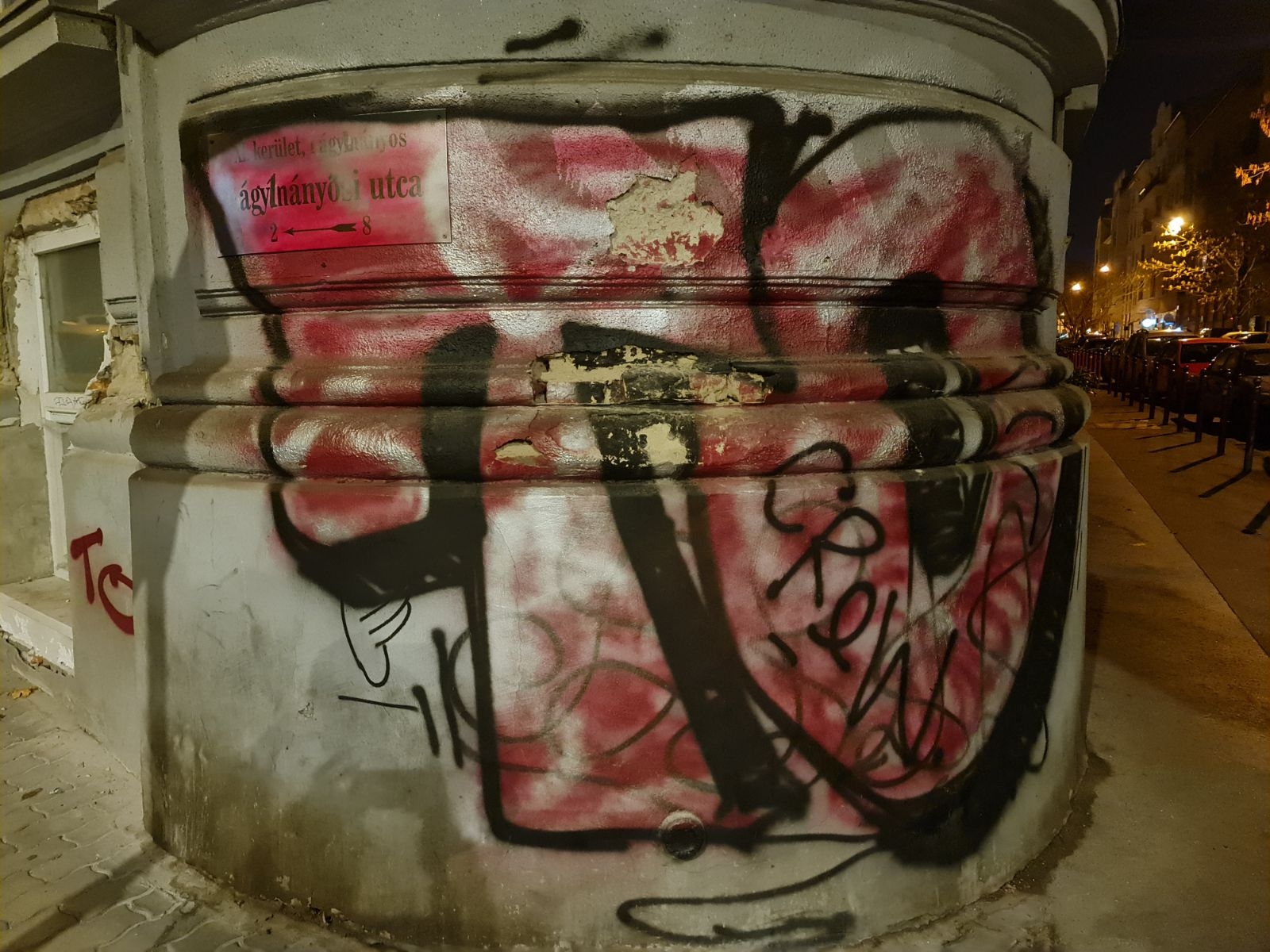 A Lágymányosi és Bercsényi utca sarkán újra hatalmas graffiti