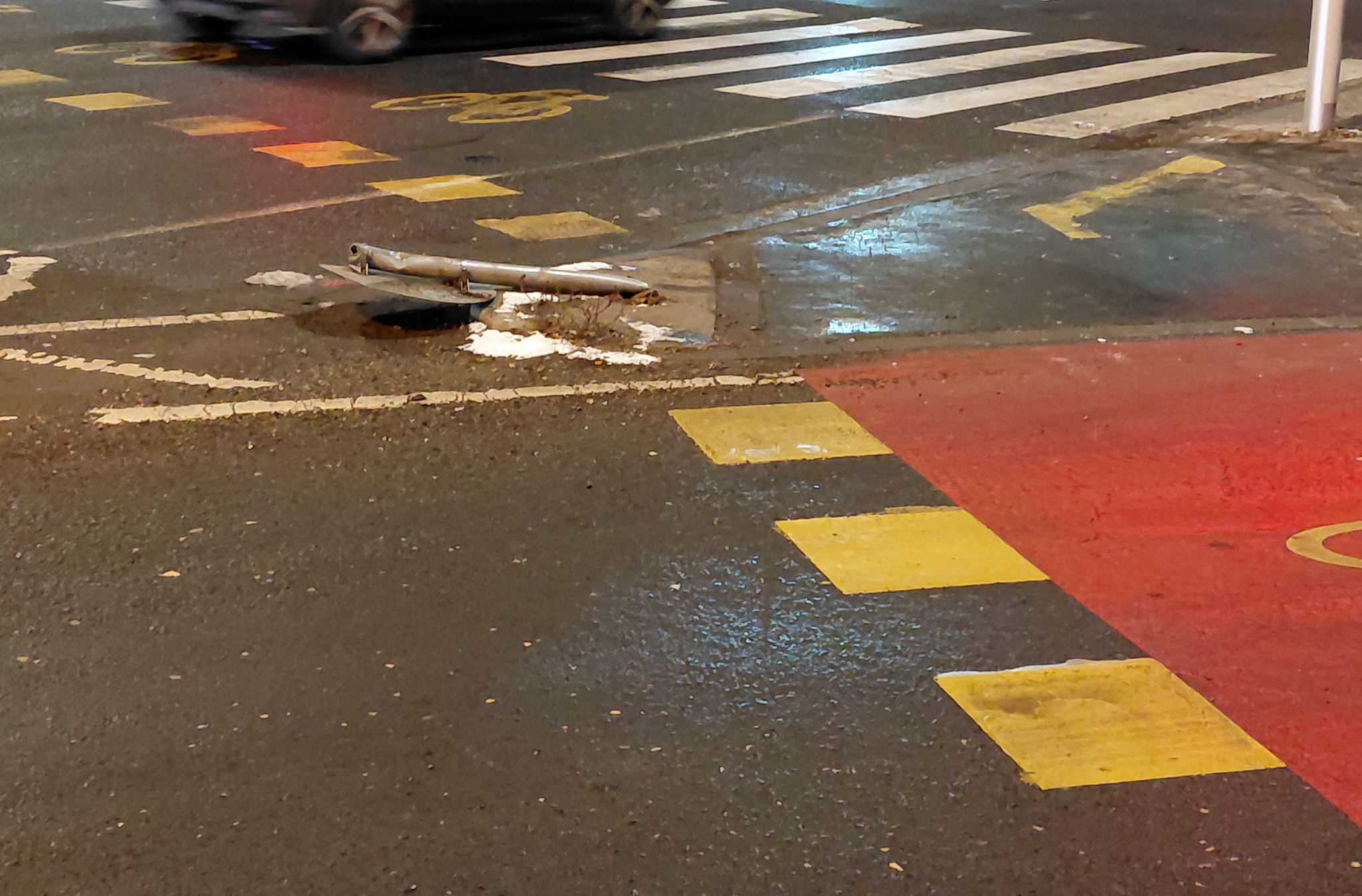 Kidőlt terelőtábla a Stadionok metrómegállónál