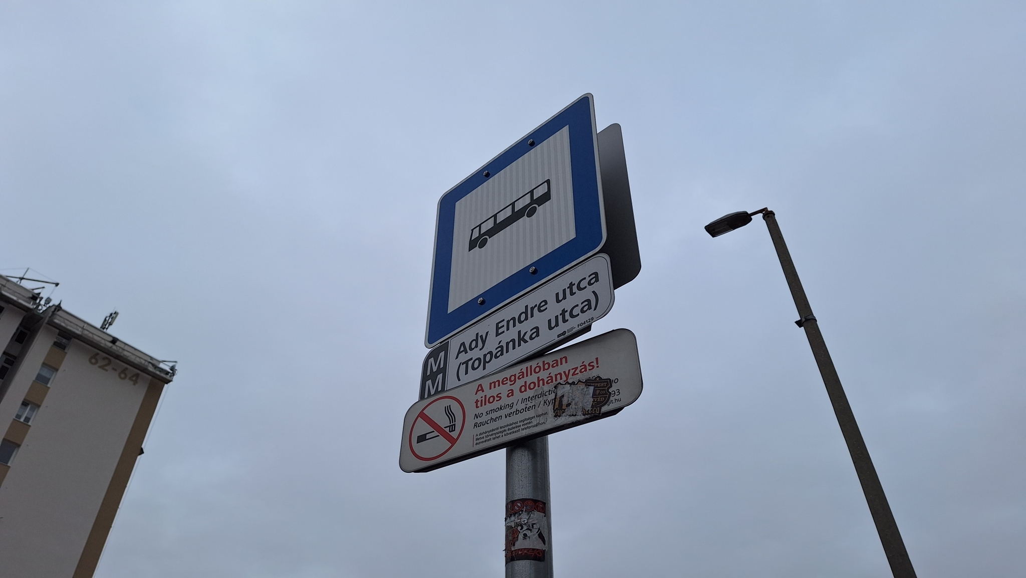 A 923-as busz Ady Endre utca (Topánka utca) megállójában össze vannak firkálva a megállótáblák. A dohányzást tiltó tábla is le lett matricázva.