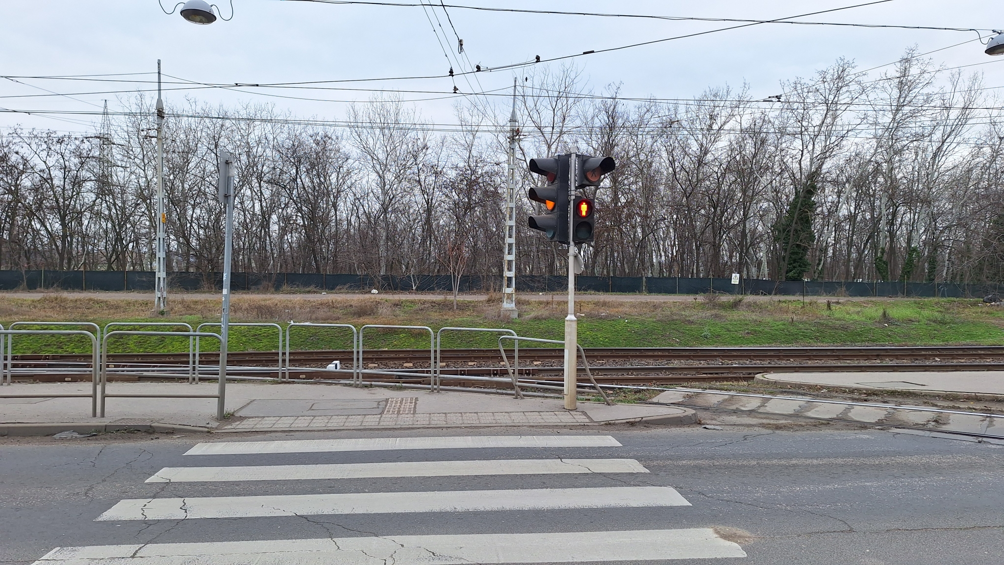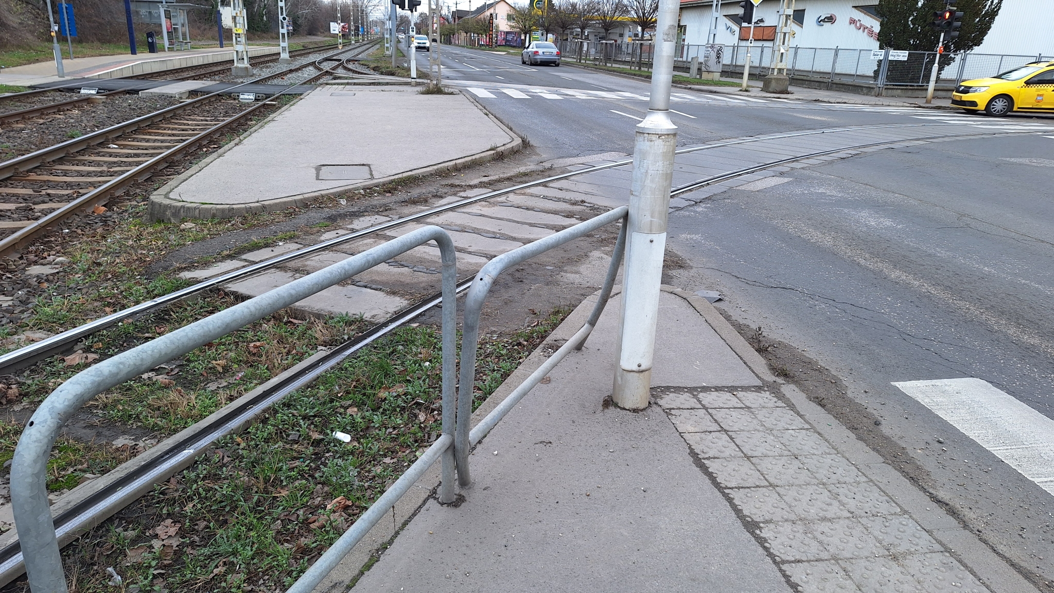 A 3-as villamos Jókai Mór utca / Határ út megállójához vezető zebránál meg lett nyomva az egyik korlátelem.