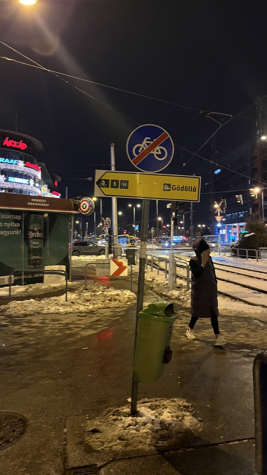 Félig leesett kerékpáros tábla az Örs vezér téri kerékpárút mentén a jelölt helyen.