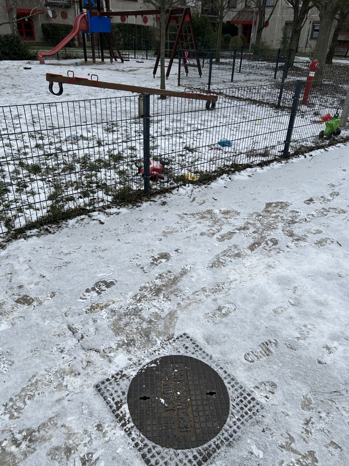 Ezzel lehet valamit kezdeni? Az egész játszótér előtt tükörjég van a hó alatt, a gyerekek esnek-kelnek a betonon.