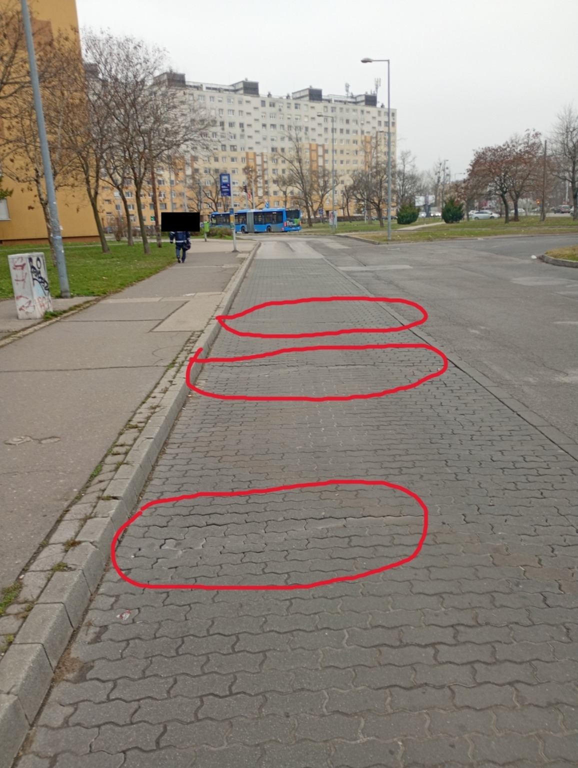 Kérem az illetékest, hogy a képen látható hullámzó térkövezést állítsák helyre!
