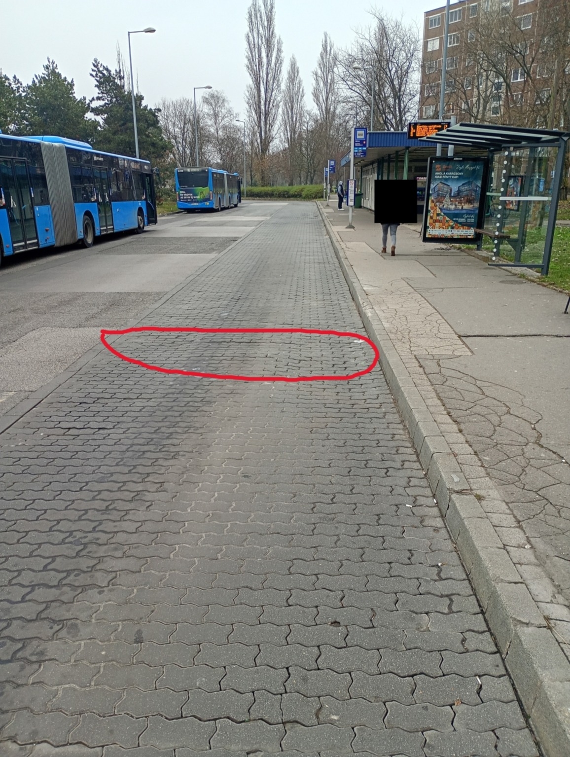 Hullámzó térkövezés a buszmegállóban