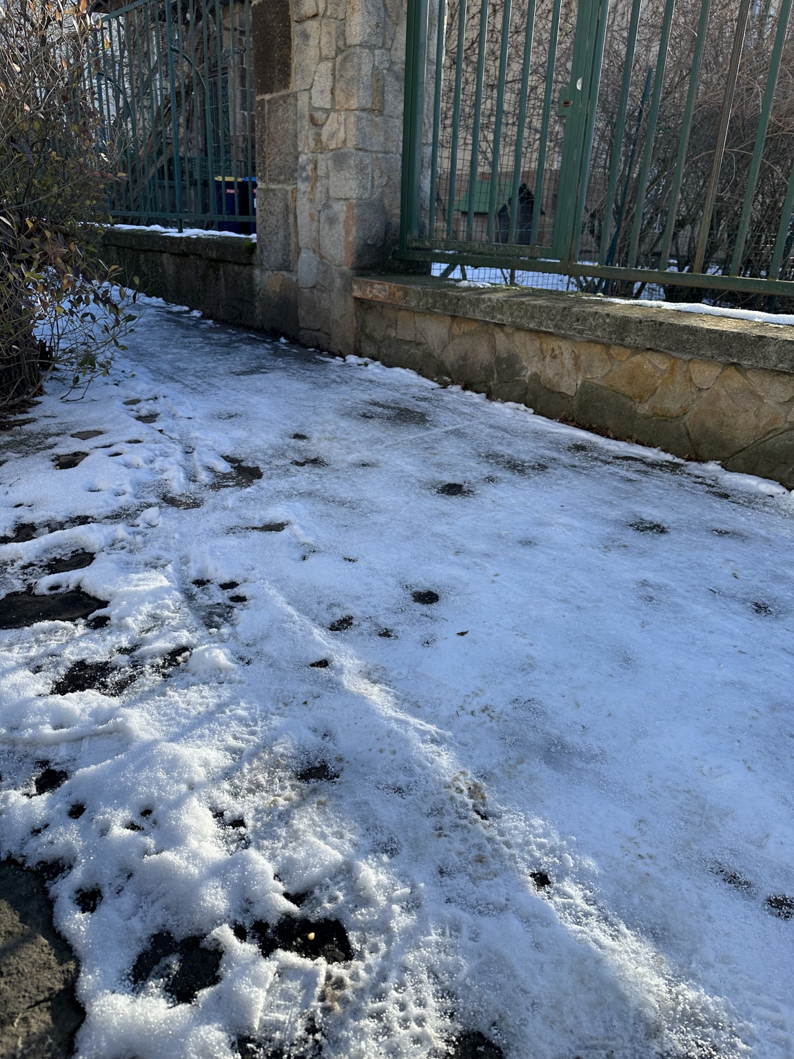 A Pentelei Molnár utca nagy részén jeges/havas a járda, veszélyes, csúszós.