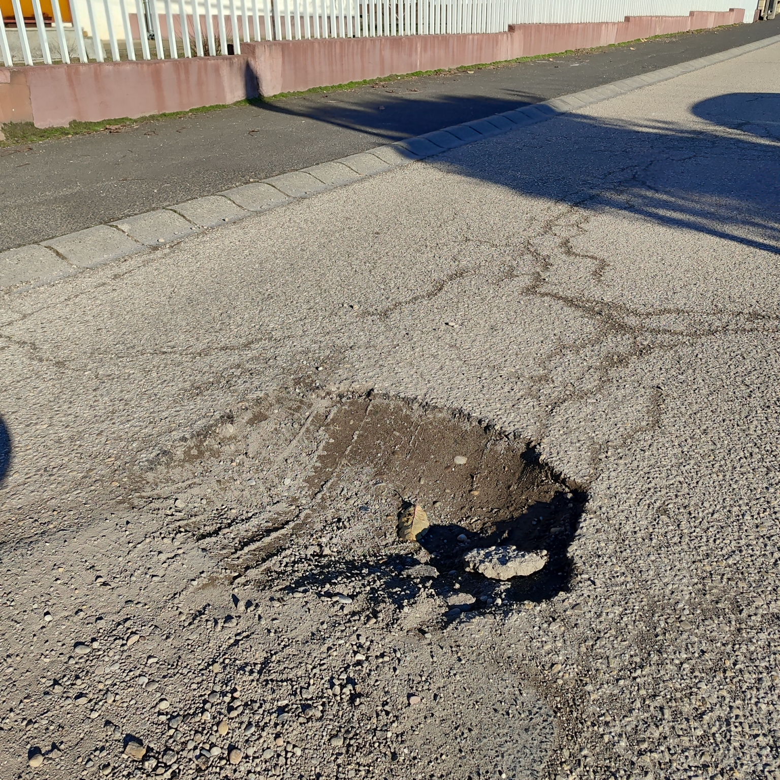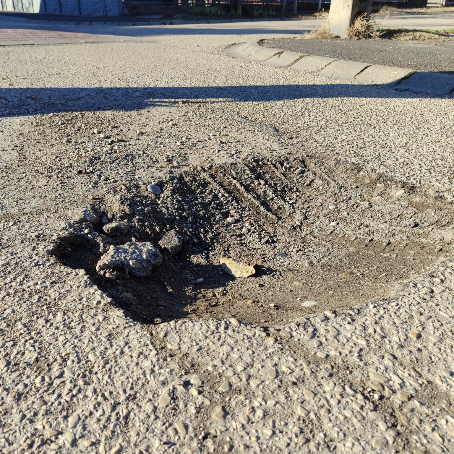Út közepén mély, kb.40-50 cm széles kátyú található.