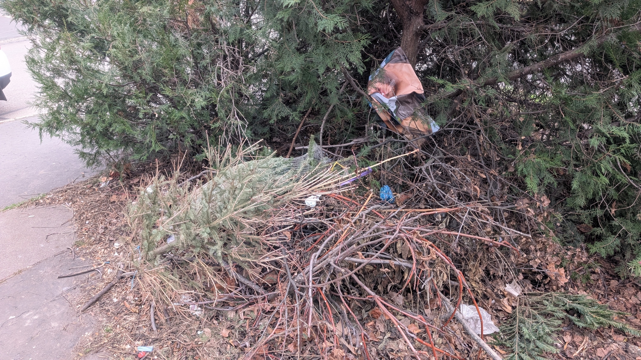 A Föld u. - Solymár u. sarkon egy kupac zöldhulladék várja az elszállítást.