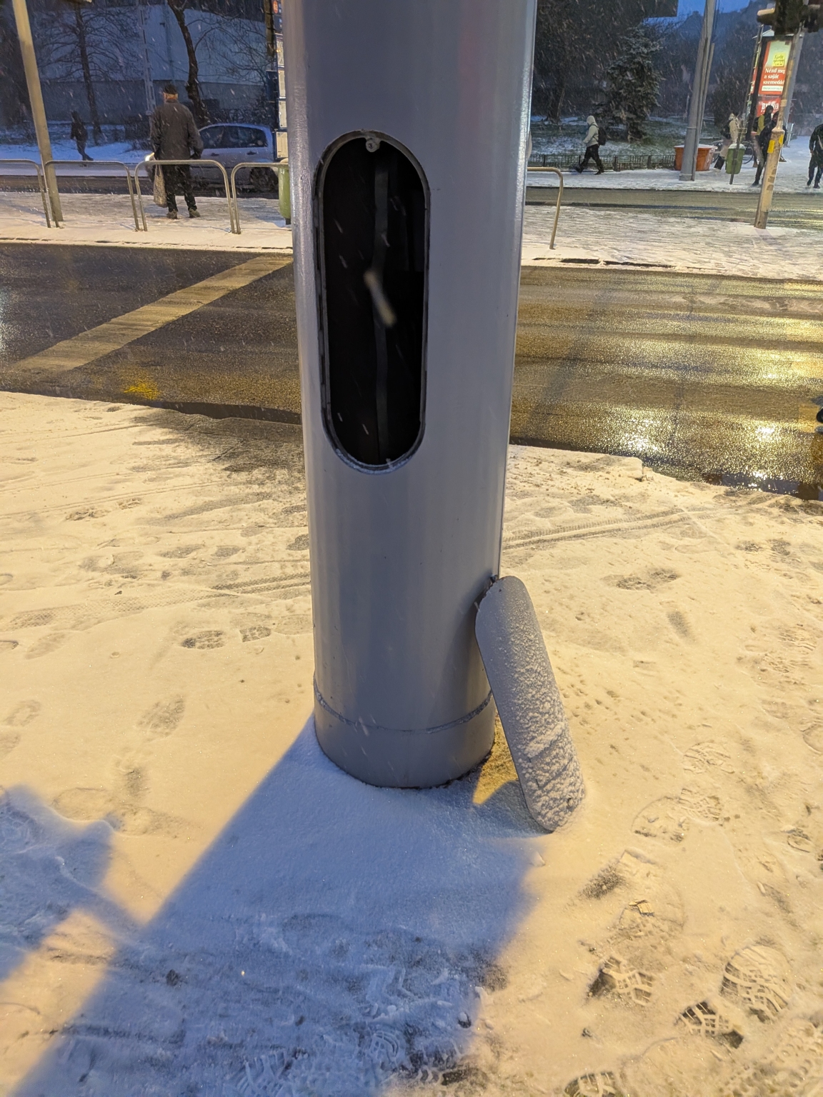 A villanyoszlop burkolata "leesett", a vezetékek nincsenek takarva.