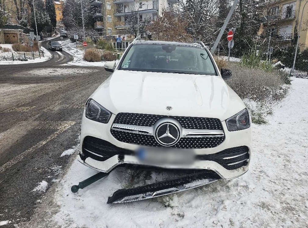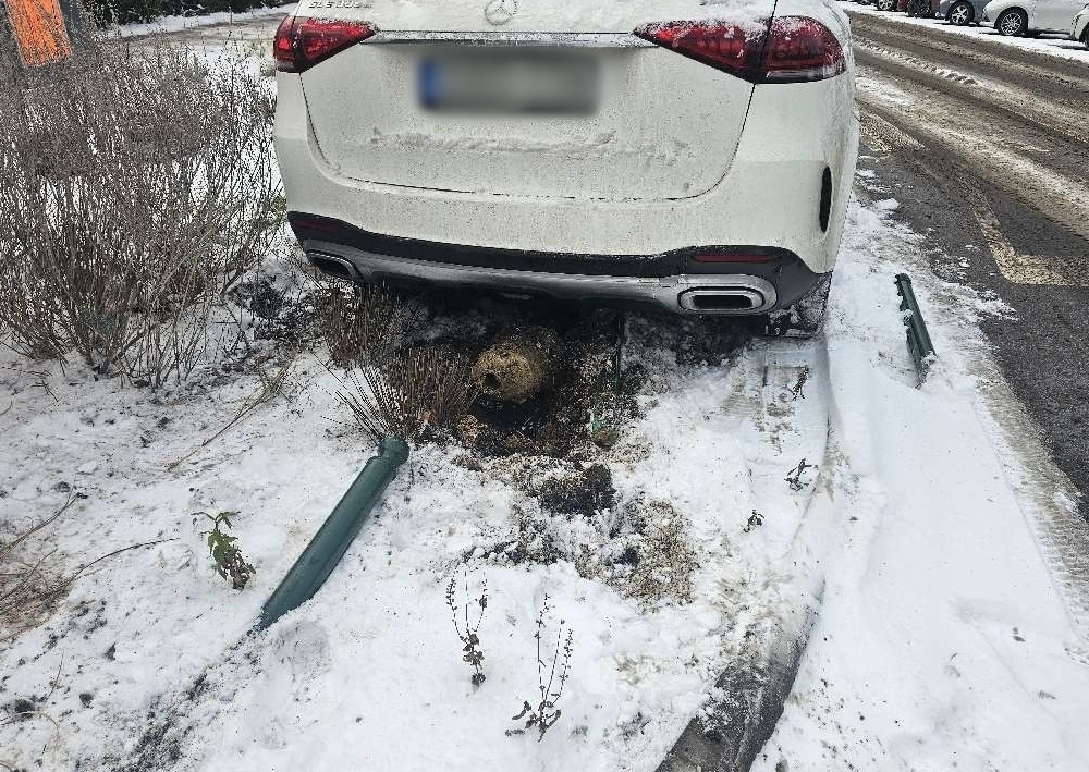 A Marczibányi téri körforgalomnál egy autós elvesztette az uralmát járműve felett. A Mercedes megcsúszott, áthaladt a körforgalmon, majd az útpadkán állt meg. Kidöntött több parkolásgátló karót és egy KRESZ táblát is.