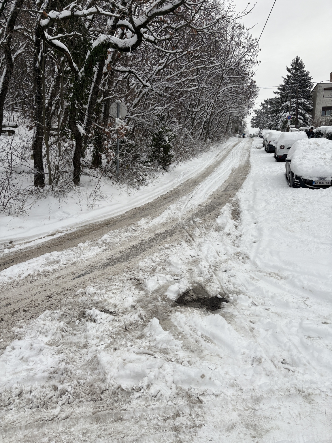 Az Endrődi Sándor utca gyakorlatilag teljesen hó alatt van. Az elmúlt 3 napban egyszer sem járt itt hókotró