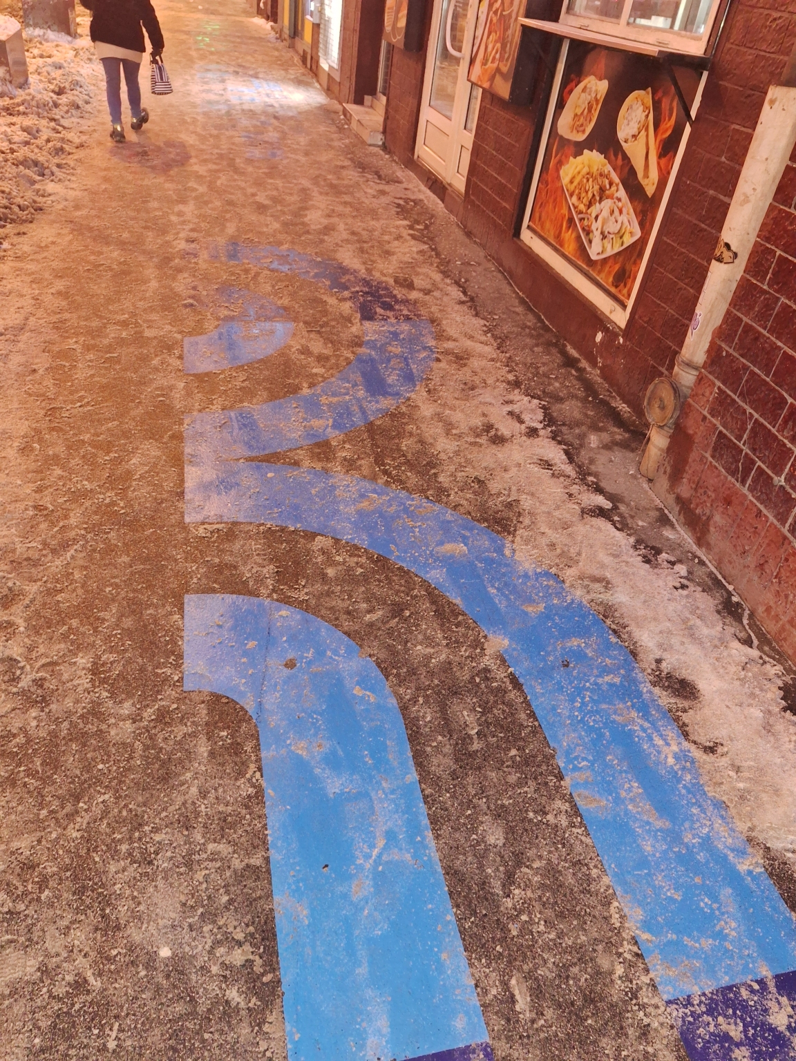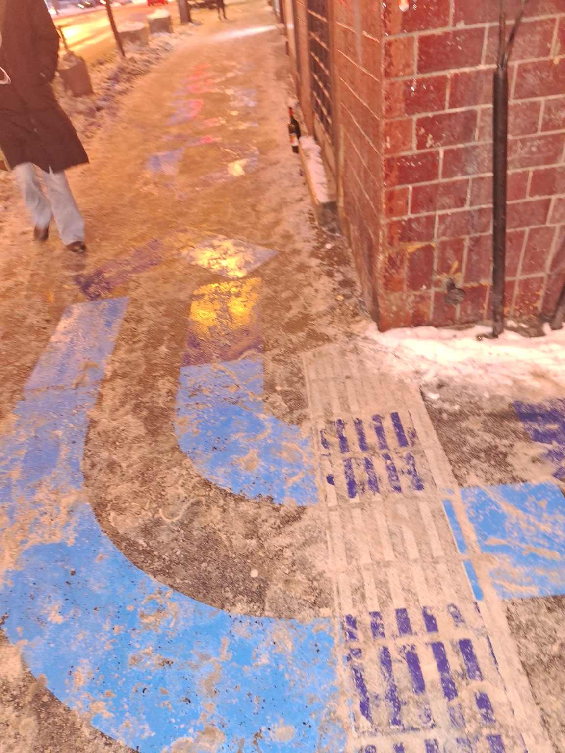 A Hernád utca végén a Thököly utca kereszteződésében egy "L"alakú kékkel felfestett felítat ami a gyalogos járda szélességének kb 80 %-át elfoglalja.Felülete rendkívűl csúszós ,nagyon balasetveszélyes,nem csak most amikor - fokok vannak hanem más évszakokban is amikor ráesik az eső.Ez a járdaszakasz rendkívül frekventált.Szeretném kérni ennek felülvizsgálatát,és a probléma megoldását az esetleges balesetek elkerülése végett.