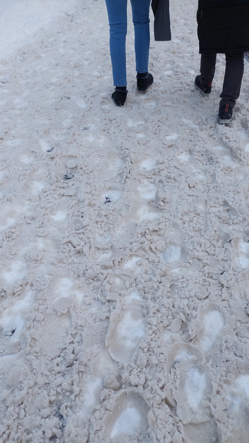 A Hungexpo melletti járda járhatatlan, 5-7 cm-es összetúrt havat taposnak a gyalogosok