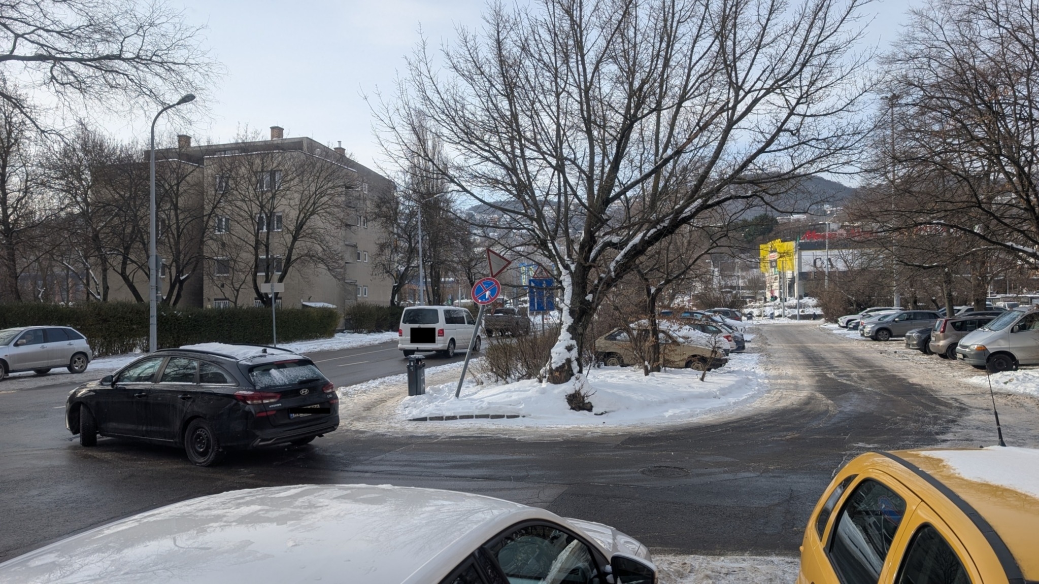 A Váradi u. 17. melletti parkoló kijáratánál elferdült egy jelzőtábla oszlopa.