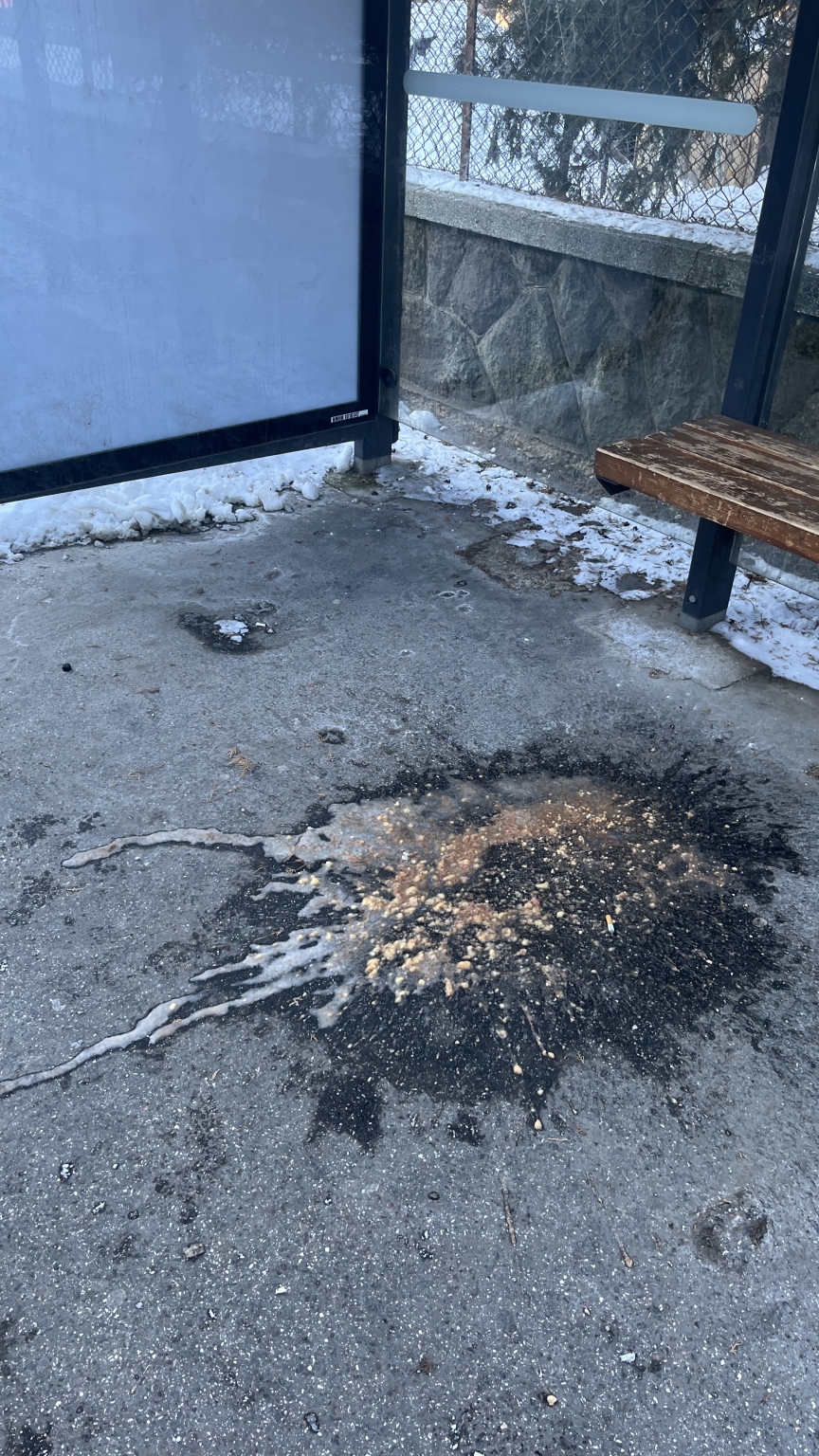 Fagyott hányás a buszmegállóban